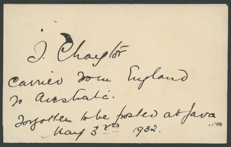 1932 (March-May) England-Australia per Lady Isobel ("Bee") Chaytor and RT ("Rab") Richards AAMC 252 with typed "Carried by Lady