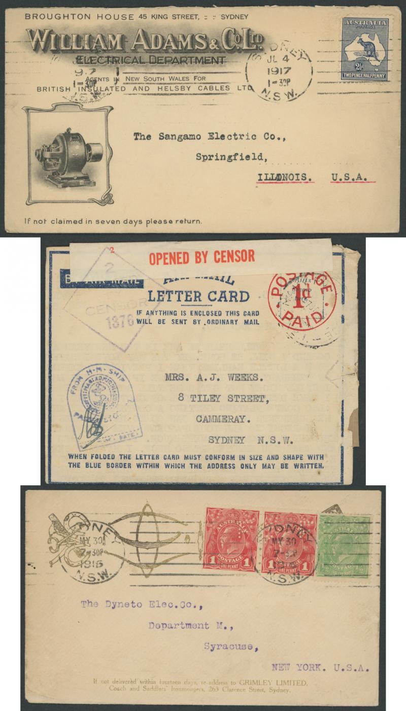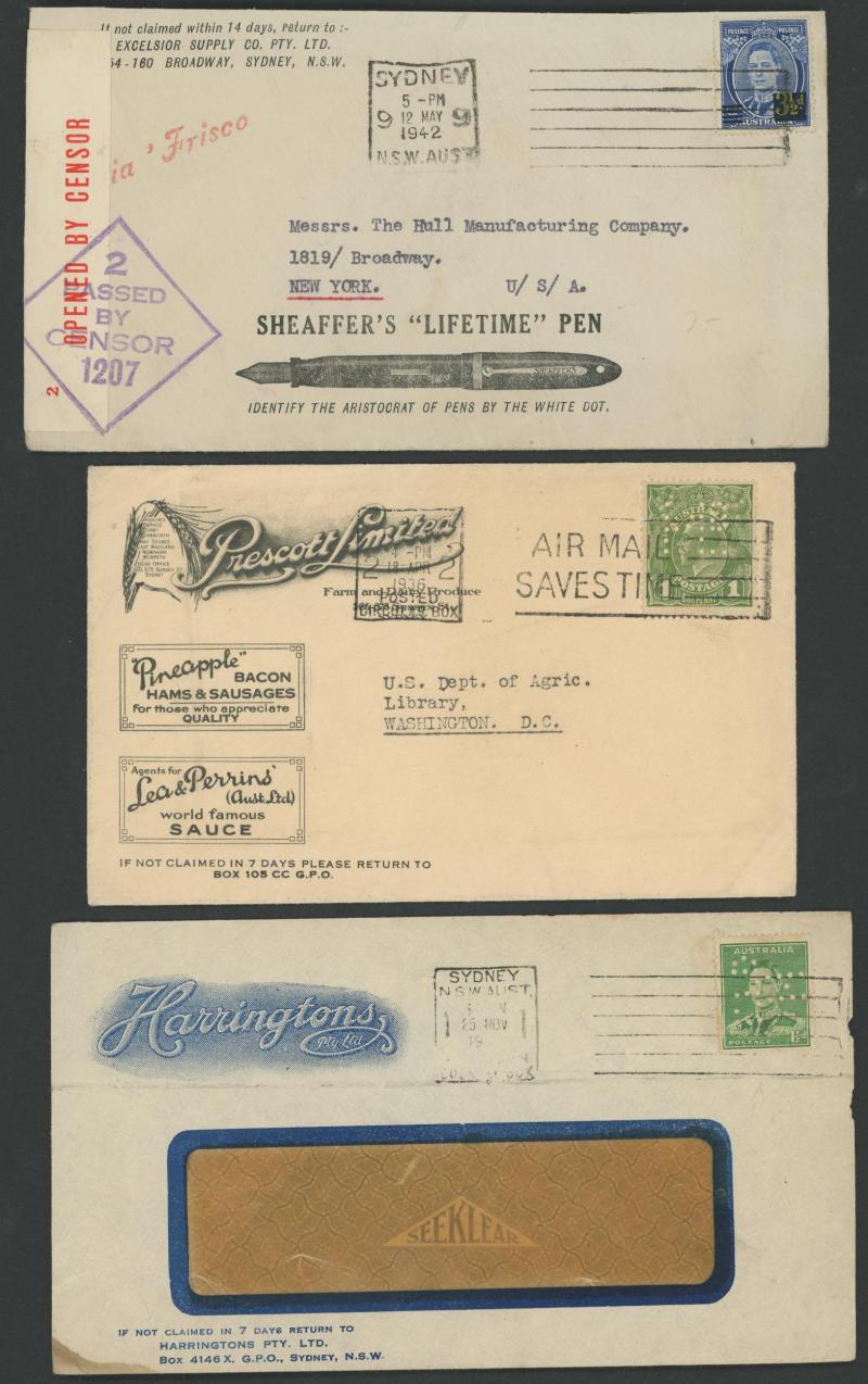 Pre-1950s commercial covers with some lovely illustrated advertising covers for Sydney firms including for Sheaffer's Pens,
