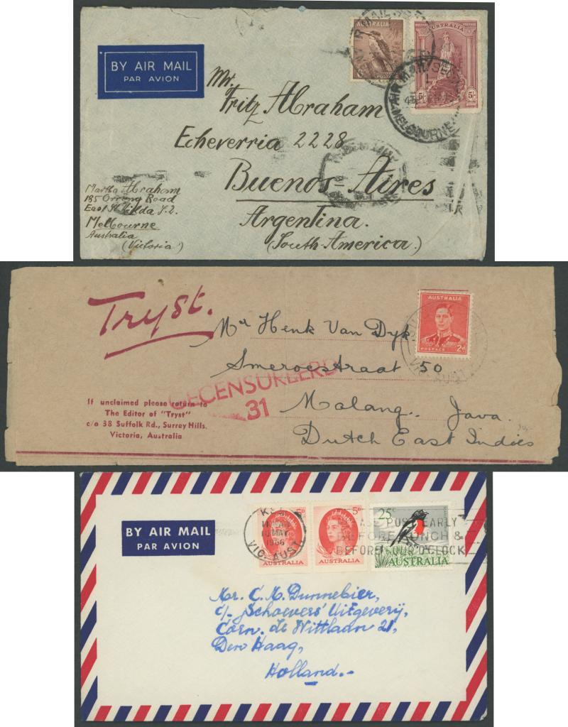 Destination Mail 1940s-60s group with 1941 newspaper wrapper to Netherlands Indies censored on arrival then mostly airmails