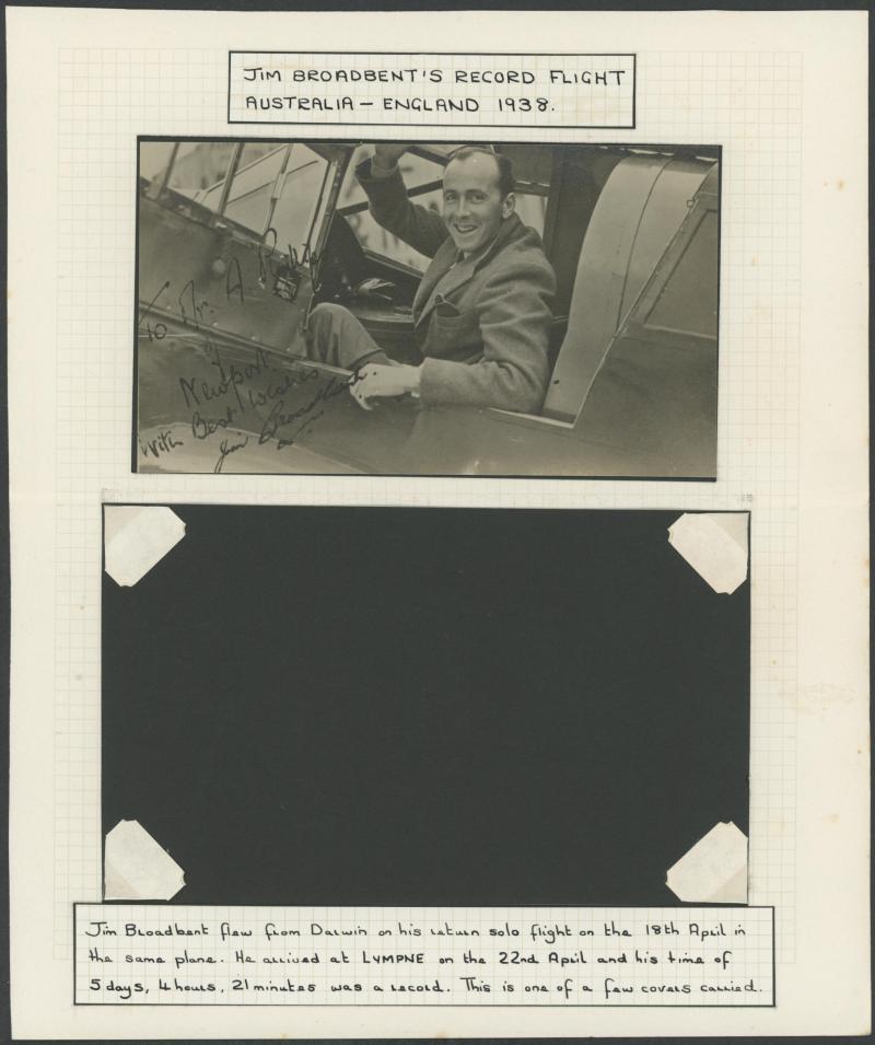 1938 (April 18) Australia-England per Harry 'Jim' Broadbent AAMC 804 with typed endorsement "5 days, 4 hrs, 21 mins Record Solo