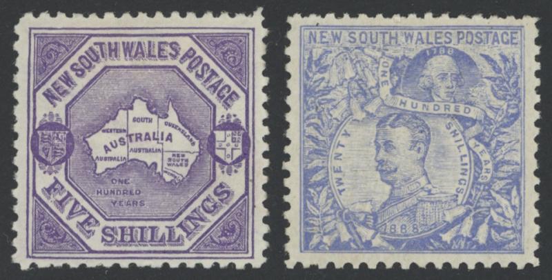 1889 Centennial High Denominations with Wmk Type '53' or '54' Perf 11 5/- Map and 20/- Governors SG 263a & 264a, large-part gum,