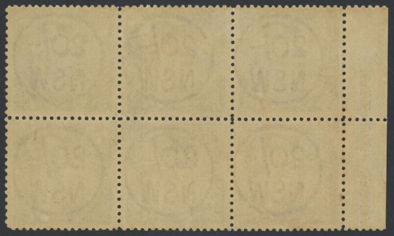 1889-91 Centennial High Denominations Wmk '20/- /NSW' 20/- dull ultramarine Perf 12x11 SG 264cb marginal block of 6 (3x2) from the
