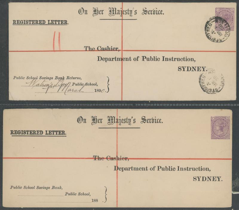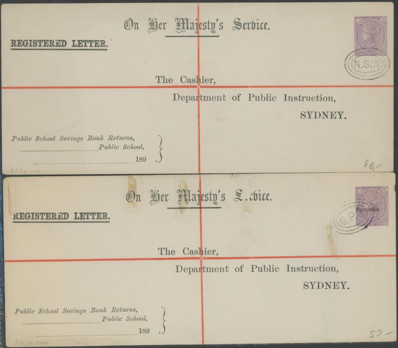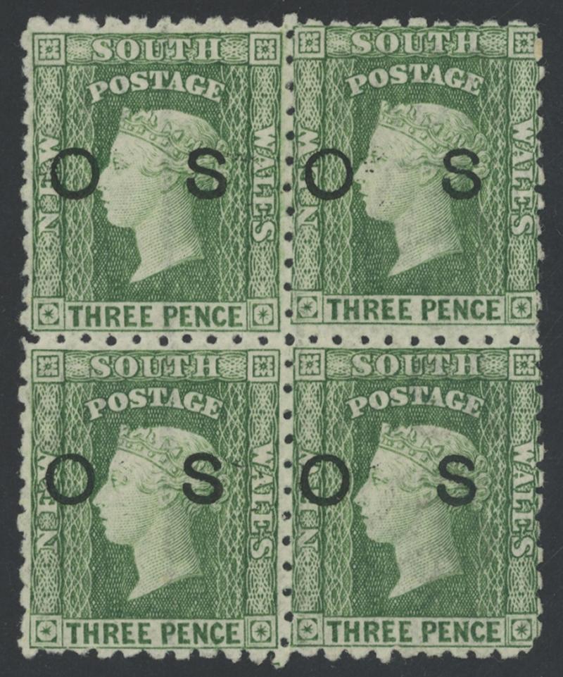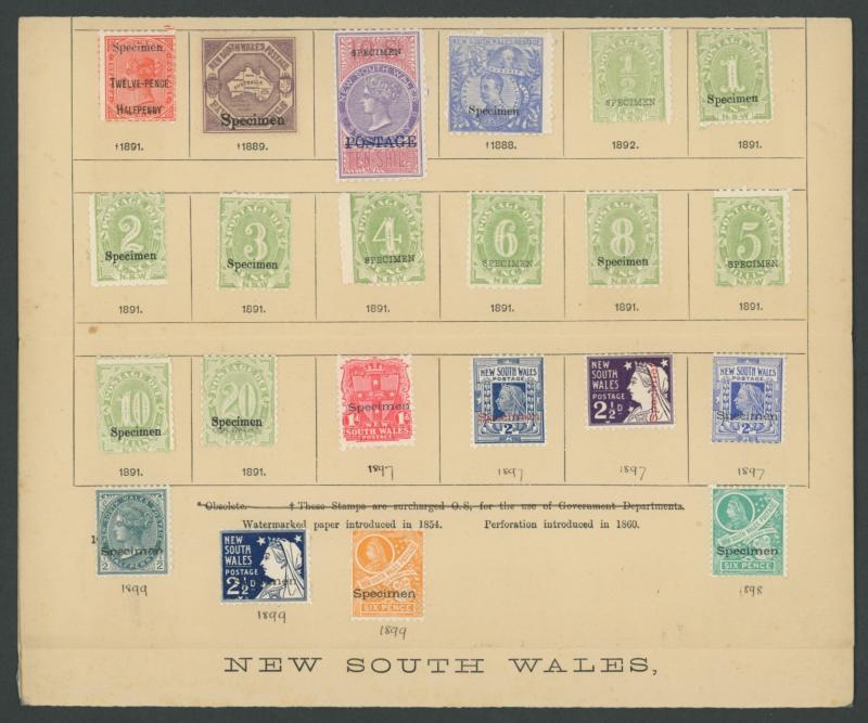 violet 'OS'-in-Die unused, postally used x11 one with superb 'TRAVELLING P.O.NORTH/NSW' transit cds on the face, CTO x2 and 'SPECIMEN' overprint, QV 6d red 'OS'-in-Die unused, used x8, CTO x2 and 'SPECIMEN' overprint x9, and Captain Cook 5d green