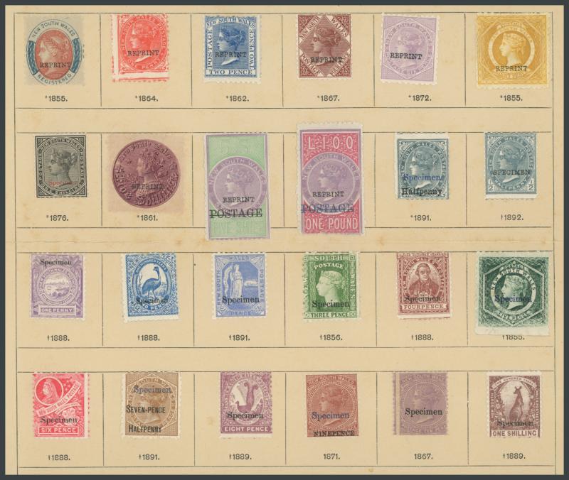 overprinted 'REPRINT' plus later issues with various 'SPECIMEN' or 'Specimen' Overprints including 5/- Map, QV 10/-, 20/- Governors and Postage Dues set to 20/-, plus six additions with manuscript "1897" to "1899", the stamps very fresh and mostly