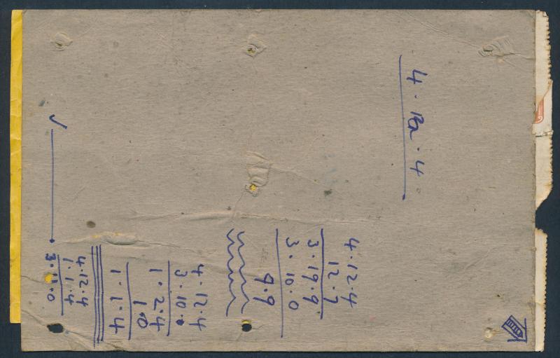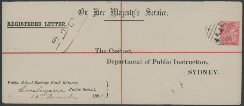 piece to Canberra with 'SYDNEY' 1d light blue, 6d red, 1/- brown pair (one unit damaged) & 5/- orange pair affixed tied by mostly untidy '79' cancels, a few light bends & blemishes. A very scarce surviving parcel 'entire'. (Image1) (Image2)
