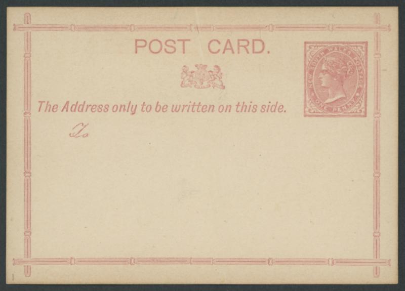 POSTAL CARDS: 1875 QV 1d rose on yellowish with 'To' in script, unused. Either an essay or from an unissued printing. (Image1)