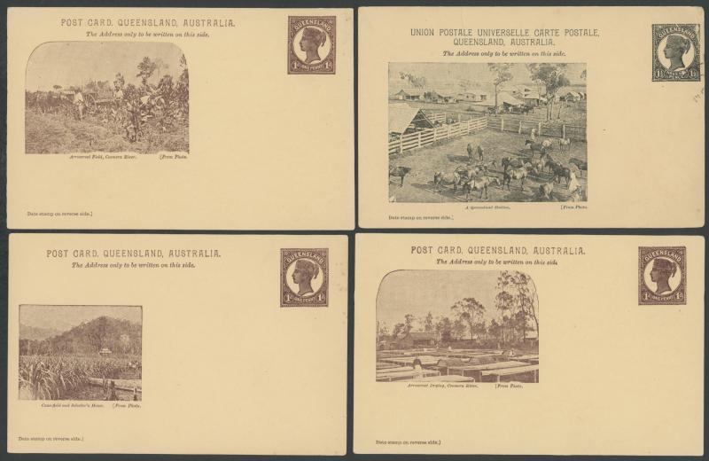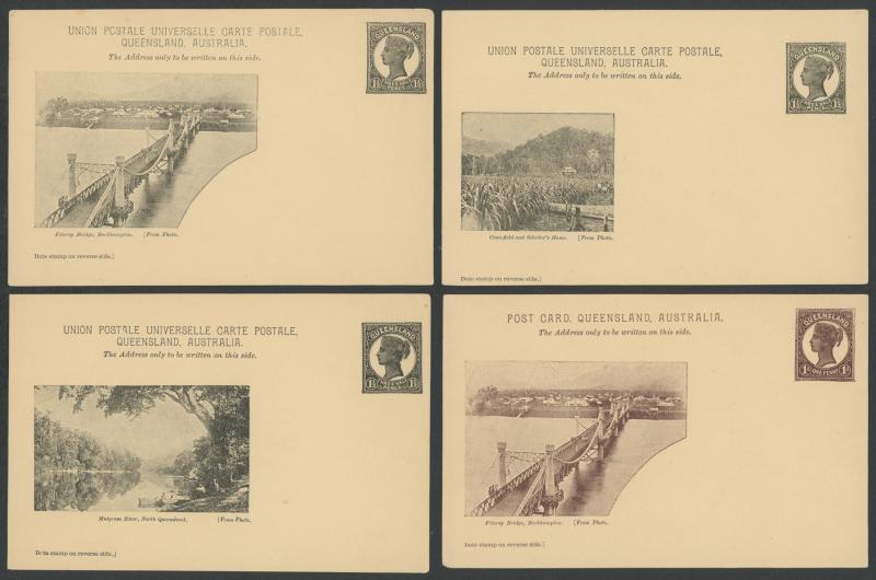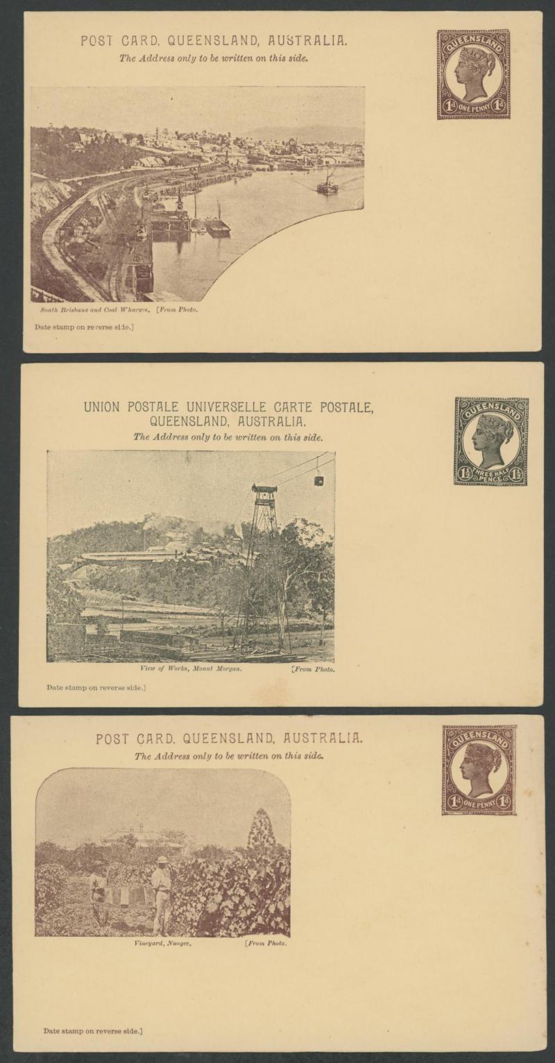 POSTAL CARDS: 1898 Pictorial Issue QV Medallion Portrait 1d brown x8 & 1½d black x7 all different, generally fine to very fine