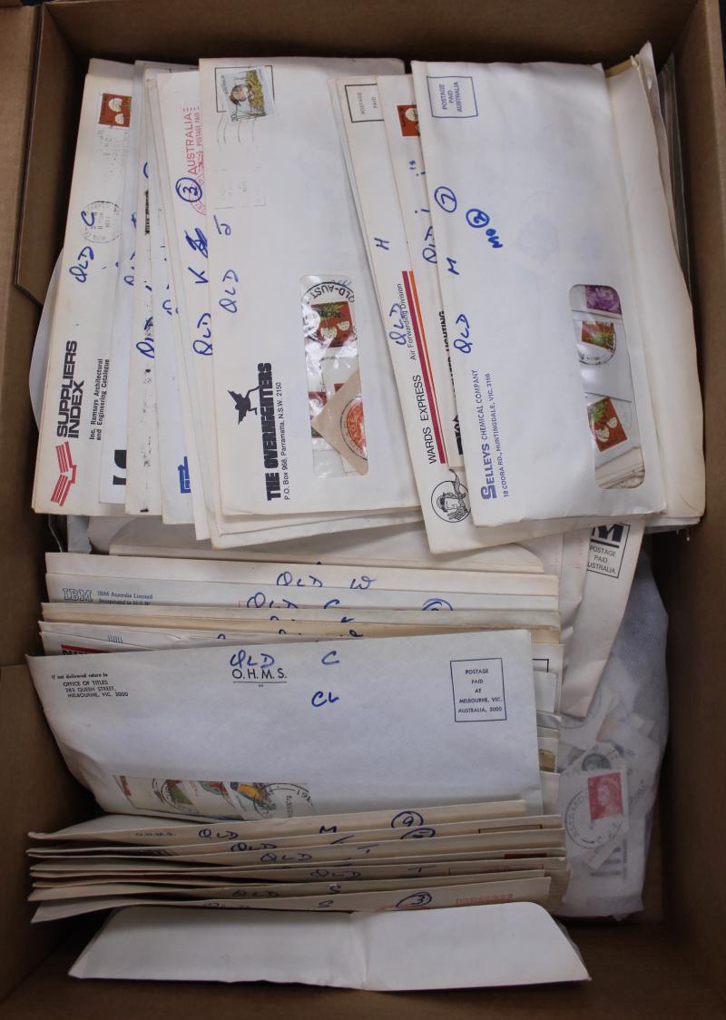 stationery, mail receipts, etc, including advertising envelopes some with 'PAID' markings, from the late-Colonial period with a few numeral cancels through Kangaroos & KGV Heads to modern, includes closed Post Offices, multiple types from larger POs,