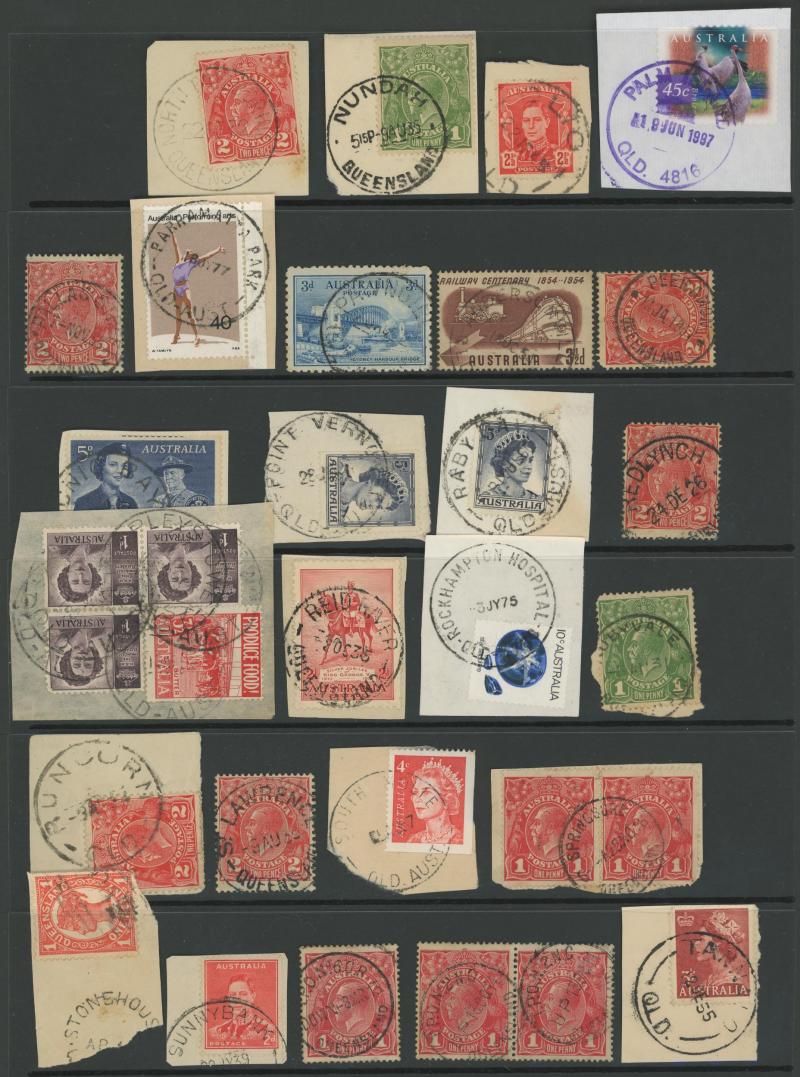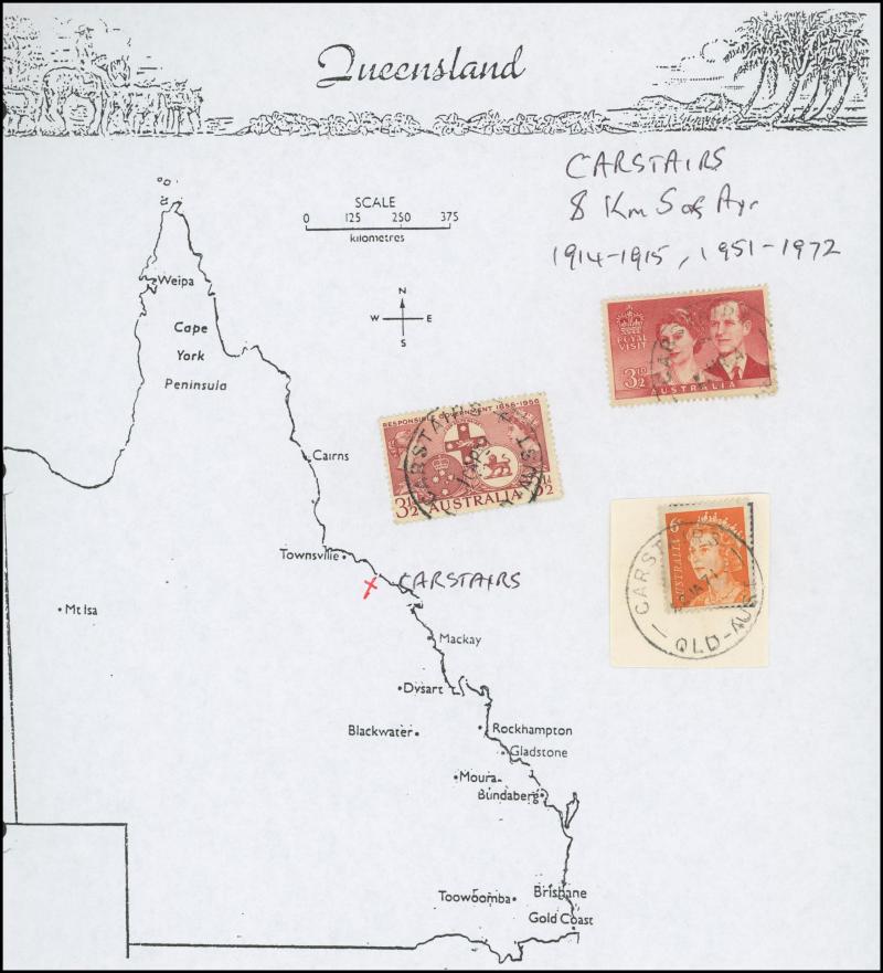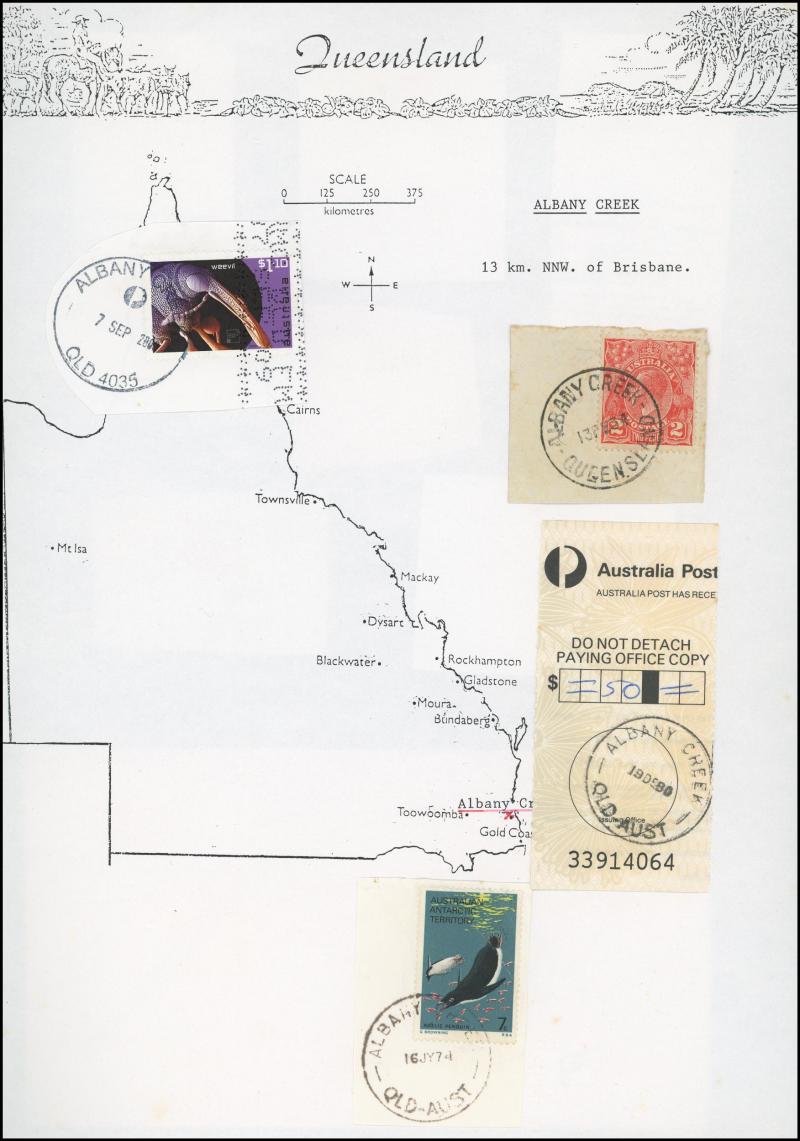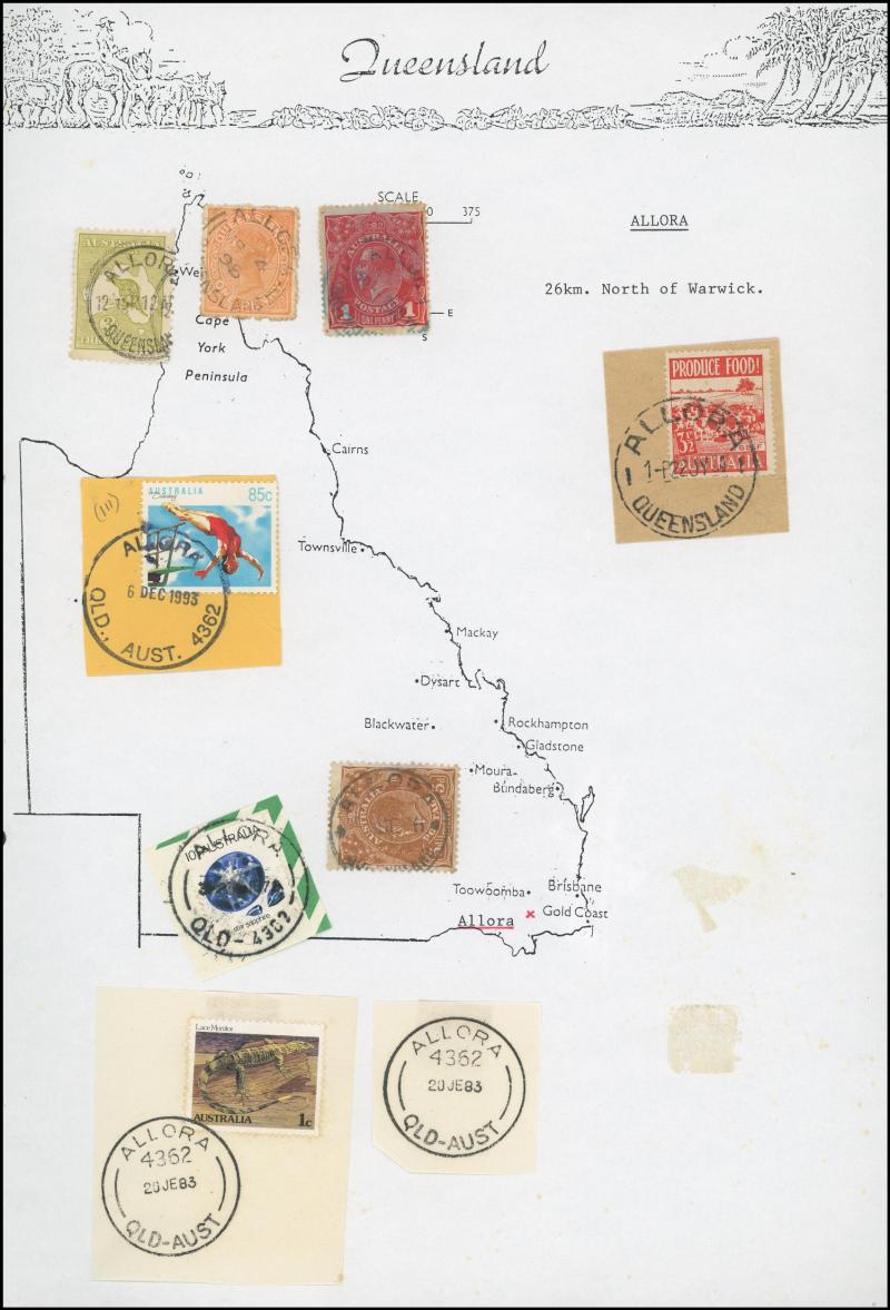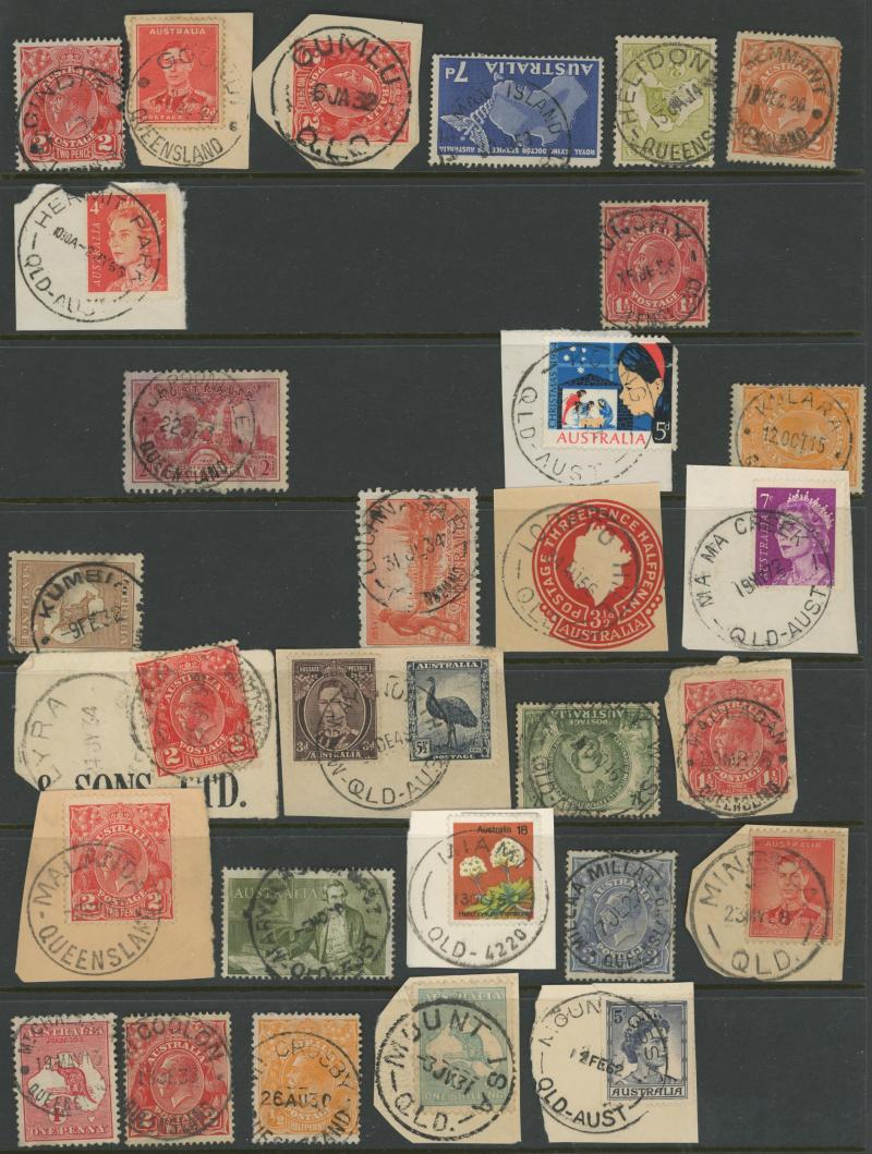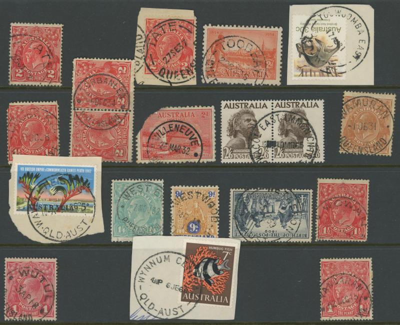 'BLUFF', 'BOOROODABIN/QLD-AUST' (LRD), 1916 'BRASSALL', 1975 'CAROLE PARK', 1965 'CINNABAR', 1898 'CRESSBROOK', 1973 'DEPOT HILL', 'EAGLE FARM AIRPORT/11AU53/...' (LRD), 1936 'EAGLEBY', 1956 'EVELYN CENTRAL', 1940 'FISHERY FALLS', 1919 'GILBERT