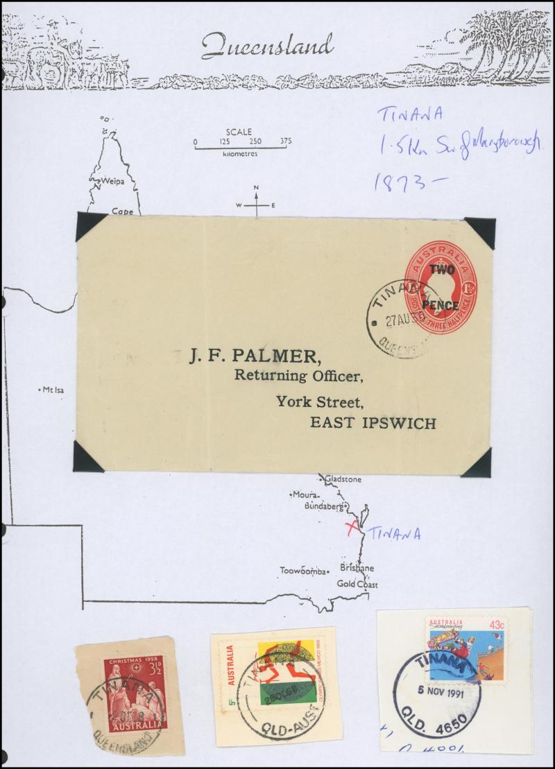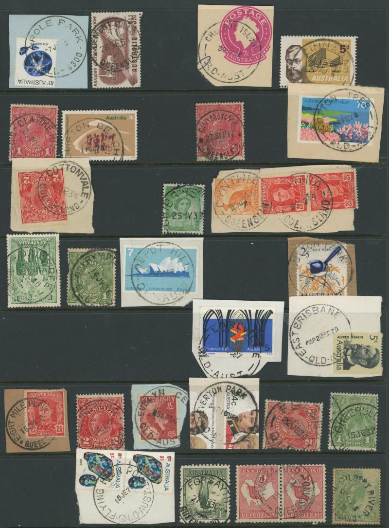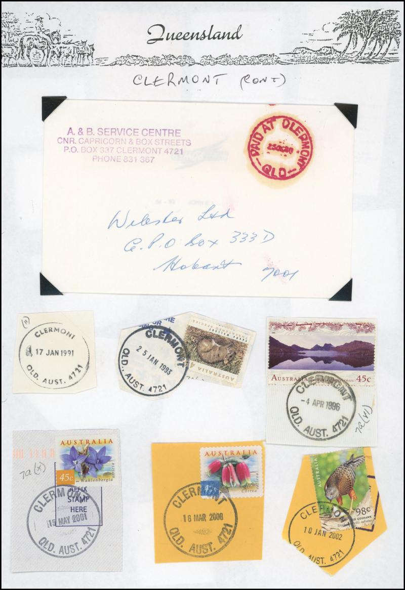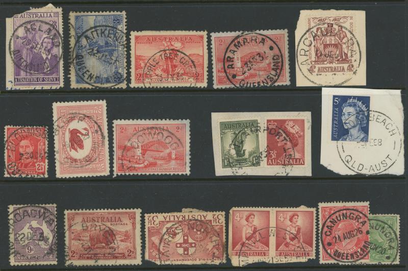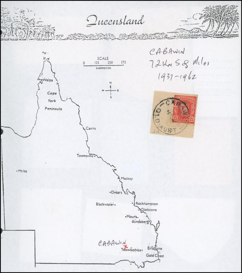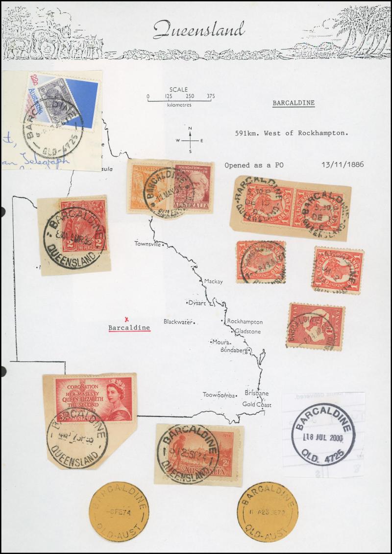 'BLUFF', 'BOOROODABIN/QLD-AUST' (LRD), 1916 'BRASSALL', 1975 'CAROLE PARK', 1965 'CINNABAR', 1898 'CRESSBROOK', 1973 'DEPOT HILL', 'EAGLE FARM AIRPORT/11AU53/...' (LRD), 1936 'EAGLEBY', 1956 'EVELYN CENTRAL', 1940 'FISHERY FALLS', 1919 'GILBERT