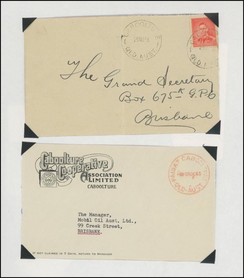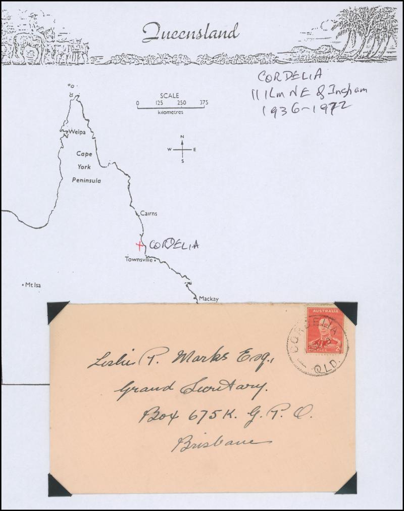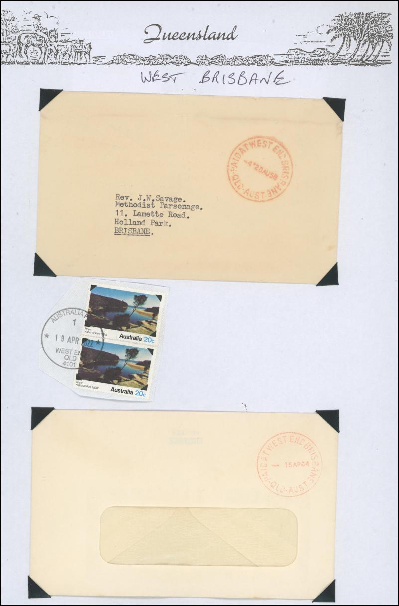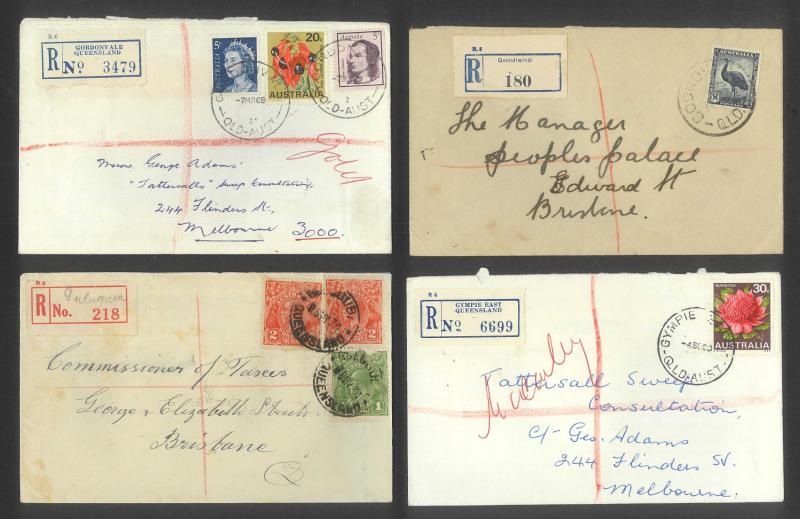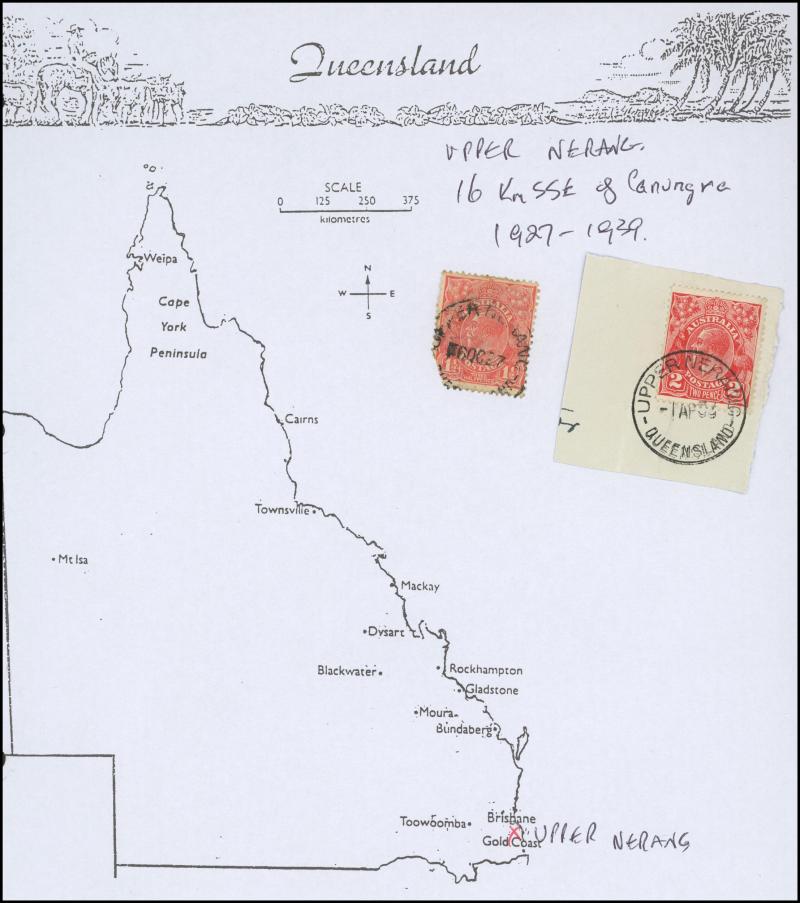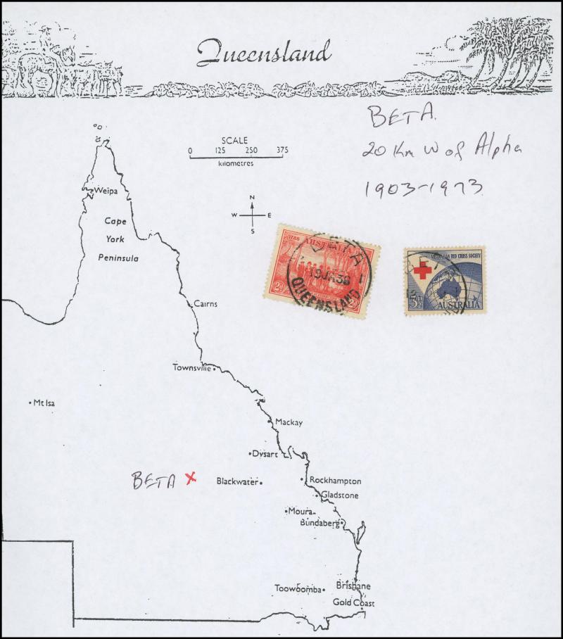 'BLUFF', 'BOOROODABIN/QLD-AUST' (LRD), 1916 'BRASSALL', 1975 'CAROLE PARK', 1965 'CINNABAR', 1898 'CRESSBROOK', 1973 'DEPOT HILL', 'EAGLE FARM AIRPORT/11AU53/...' (LRD), 1936 'EAGLEBY', 1956 'EVELYN CENTRAL', 1940 'FISHERY FALLS', 1919 'GILBERT