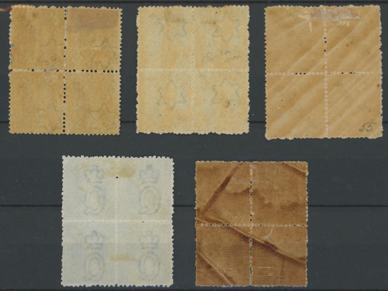 yellow-orange (natural paper creases & brown gum) blocks of 4, a few bends otherwise very fine with large-part gum & some units are unmounted.