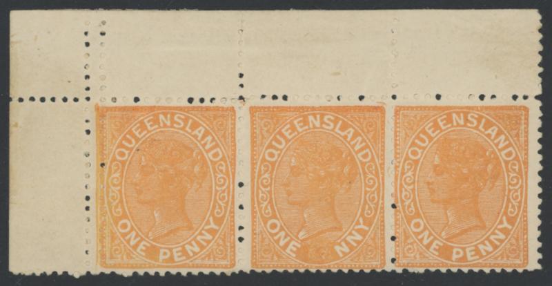 1895 QV Second Sidefaces with Lined Background Blue Burelé Band on the Reverse 1d vermilion-red upper-left corner horizontal strip
