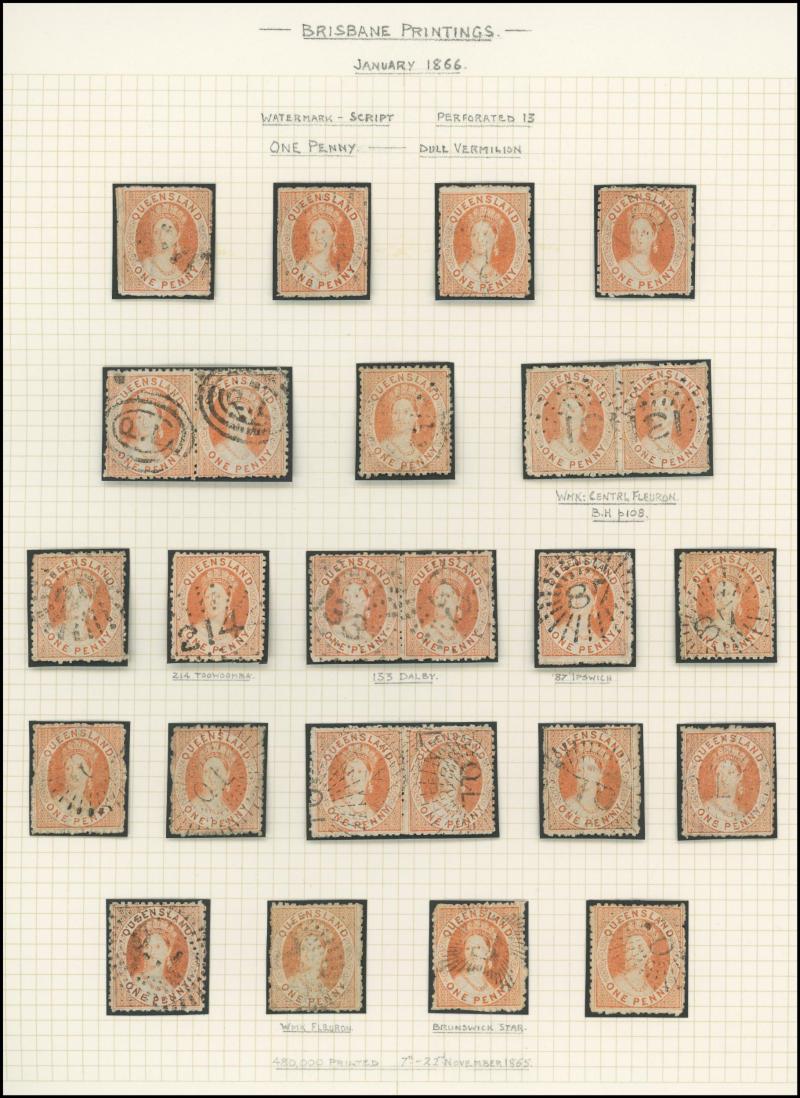 plus used 1d x29 including four pairs, and 2d x69 including pairs x5 and strips of 3 x4, some postmark interest, generally very fine, Cat £3400+. Ex Alan Griffiths, on his display pages.