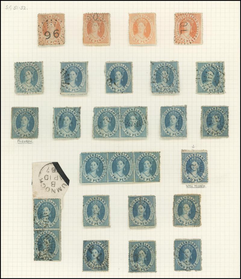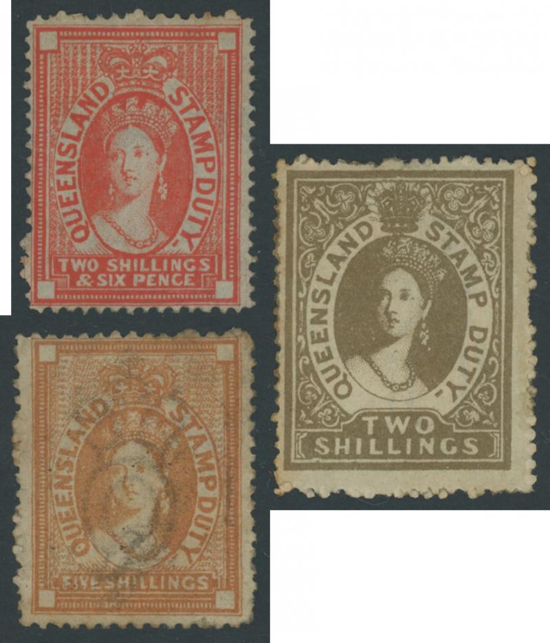 2/6d *, 5/- used and unused, 10/- used x2, 20/- used (none of these have been expertised), 1873 Wmk Crown/Q Perf 13 1d *, 1874 Wmk Crown/Q Perf 12 6d, 1/-, 5/- * and 2/6d & 5/- x2 used on piece, 1d imperf, 1878 QV Head 1d *, 1892 Tall £1 * and many