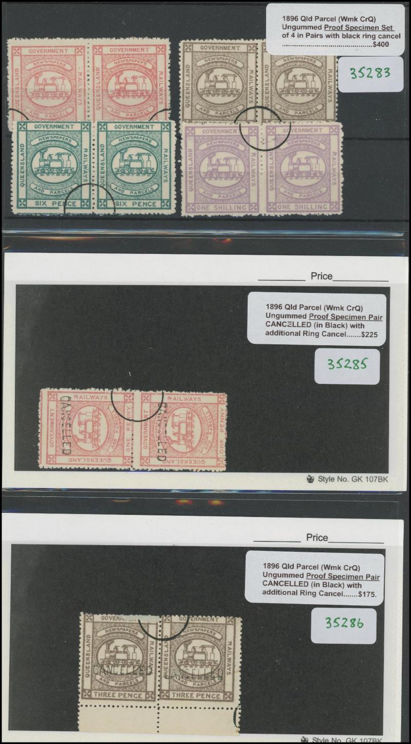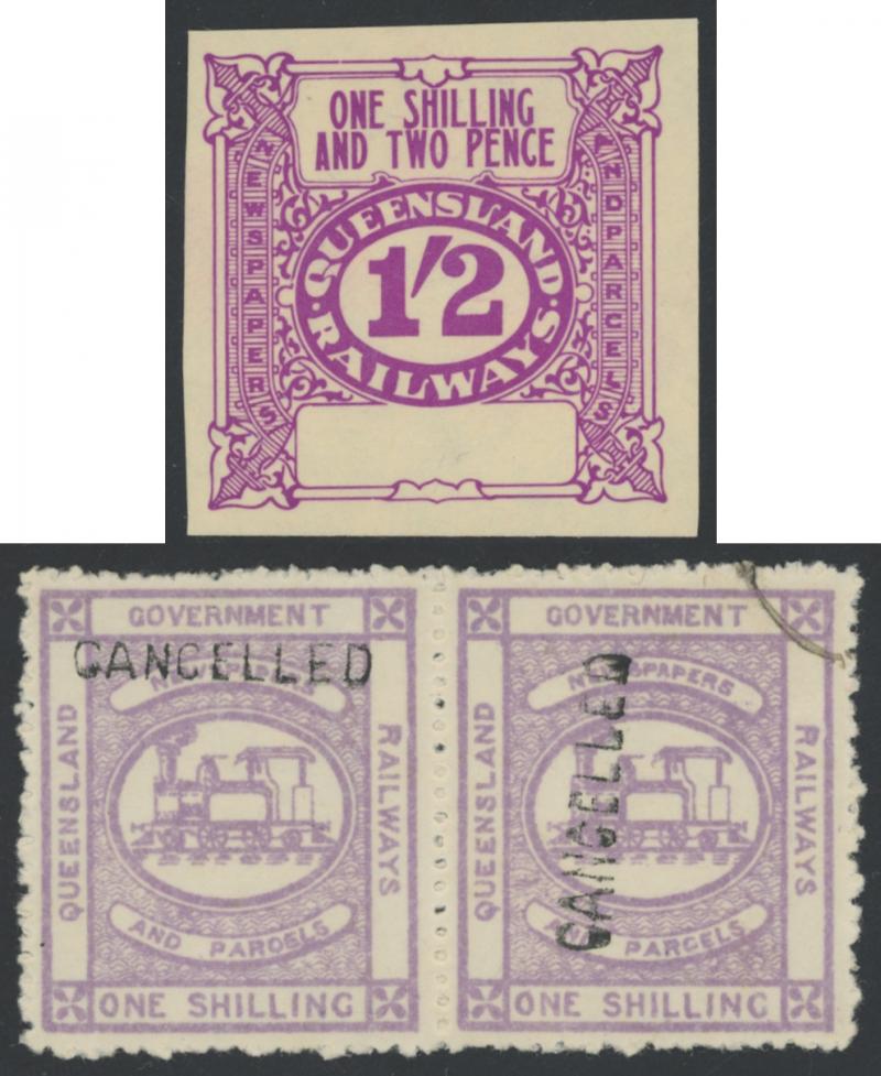 RAILWAY STAMPS: Selection including 1896 Wmk Crown Q ungummed set of four in pairs CTO with quarter ring cancel, 'CANCELLED'