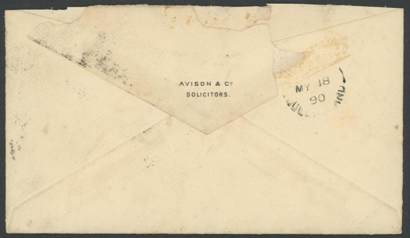 1890 (April 9) solicitor's envelope from England to "Captain Pennefather, Governor of St Helena, Brisbane, Queensland" with 1d