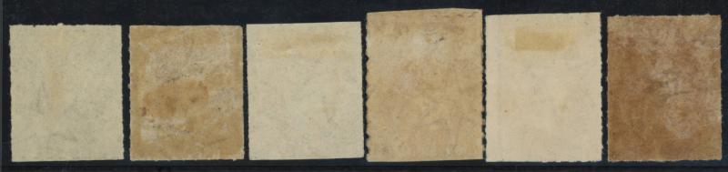 shades x2 and 2/- (characteristic brown gum) between SG 34 & 43, unused, Cat £2780. (6) (Image1) (Image2)