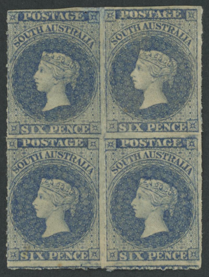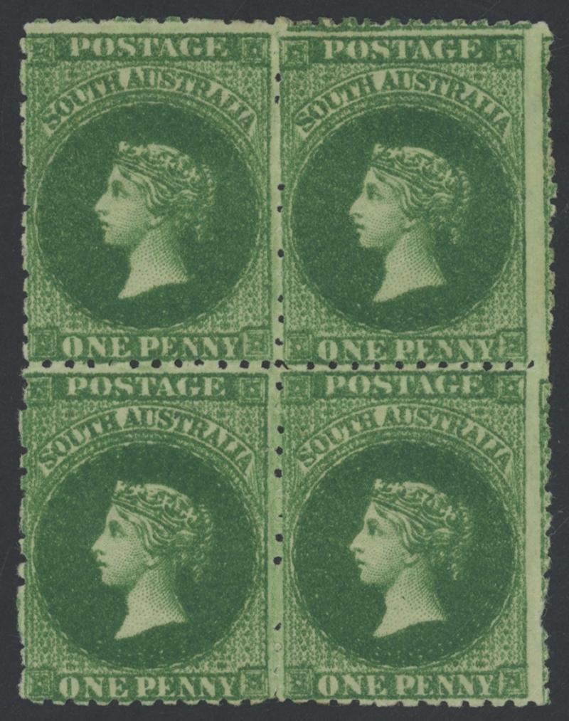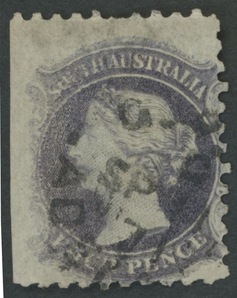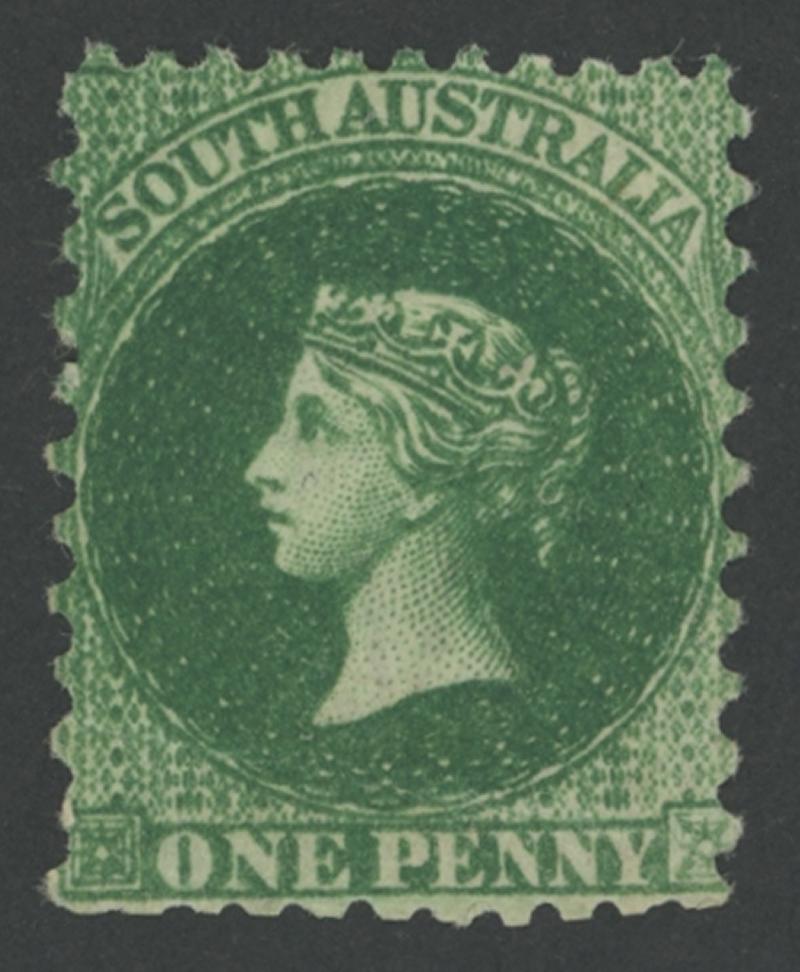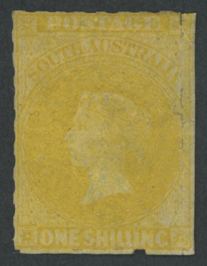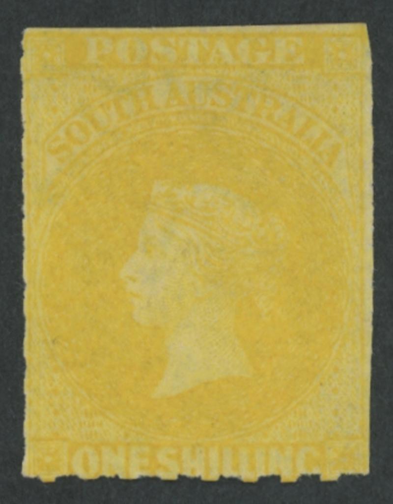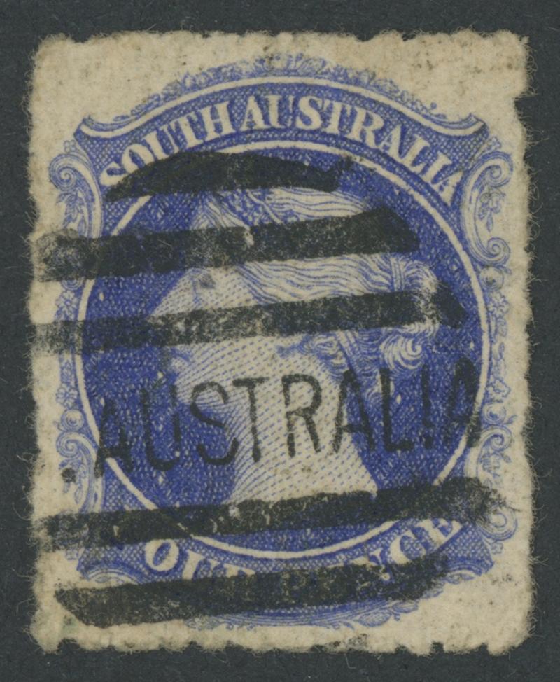 characteristic uneven perfs, minor light diagonal crease at upper-left that does not affect the very fine facial appearance, neat Adelaide duplex bars cancel, Cat £55,000. Ex 'Isleham' (1987 Lot 2469). BPA Certificate (1987) states 'is genuine.