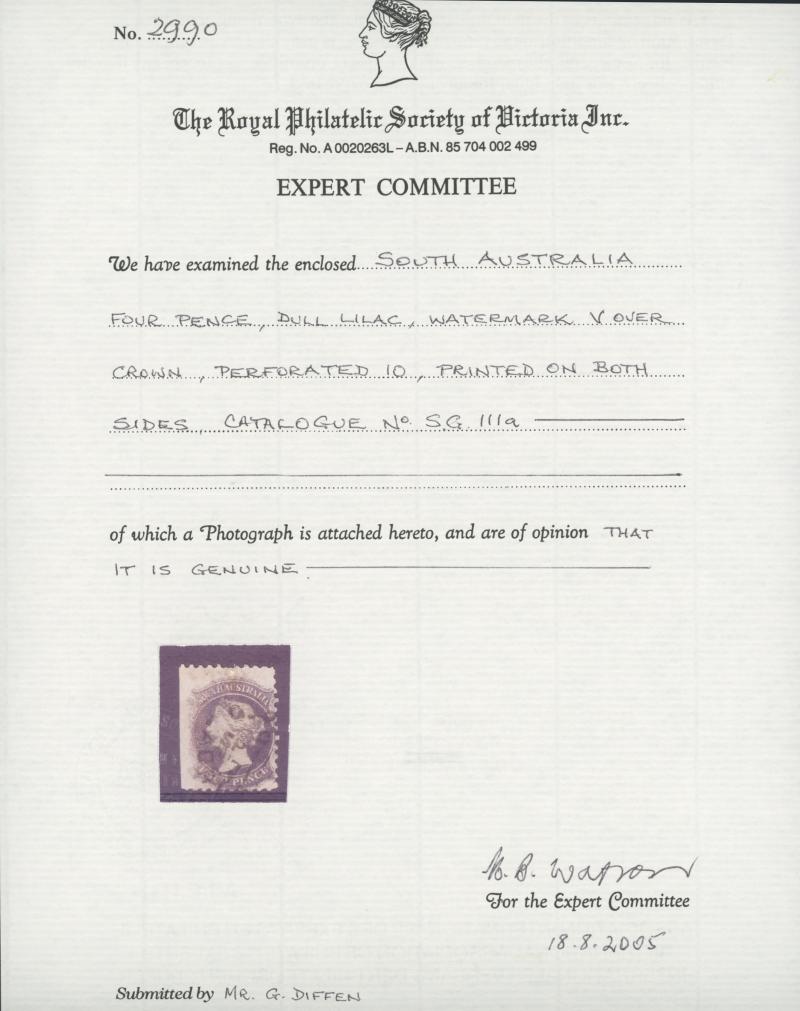 from Gary Diffen's Errors & Don Pearce's South Australia. Diffen's two very fine used pairs (Cat £3500) sold for £1920 & £2040 respectively.