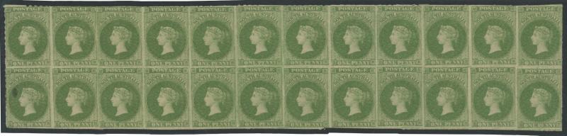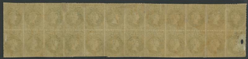 1860-69 Second Rouletted Issue 1d sage-green SG 21 block of 24 (12x2) representing two full rows with the side-margins removed,