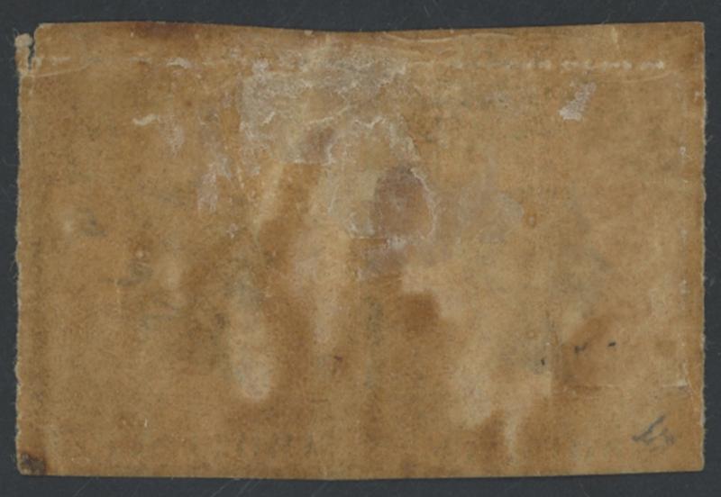sides and top where cut from the sheet to preserve the design and imperf at base presumably above misplaced horizontal rouletting, a bit aged with a minor stain at centre-top, large-part original (brown) gum, Cat £3750. BPA Certificate (1979). Absent