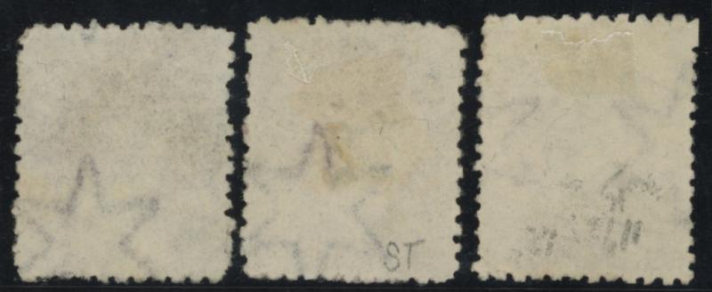 Double Prints most obvious in the inscriptions and the last also at the back of the chignon, lightly cancelled, one with GPO cds of 'SE-/85'. Unlisted by Gibbons. The first with Chris Cermuga Certificate (2008) that states 'Very rare', the last with