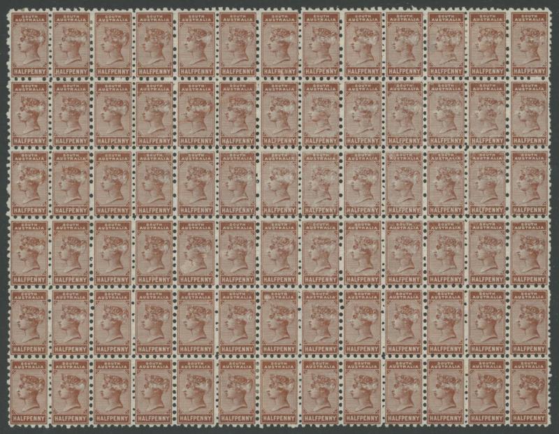1883-99 QV De La Rue New Denominations Perf 10x11½-12½ 'Bantam' ½d red-brown SG 186 block of 78 (13x6) with most units showing