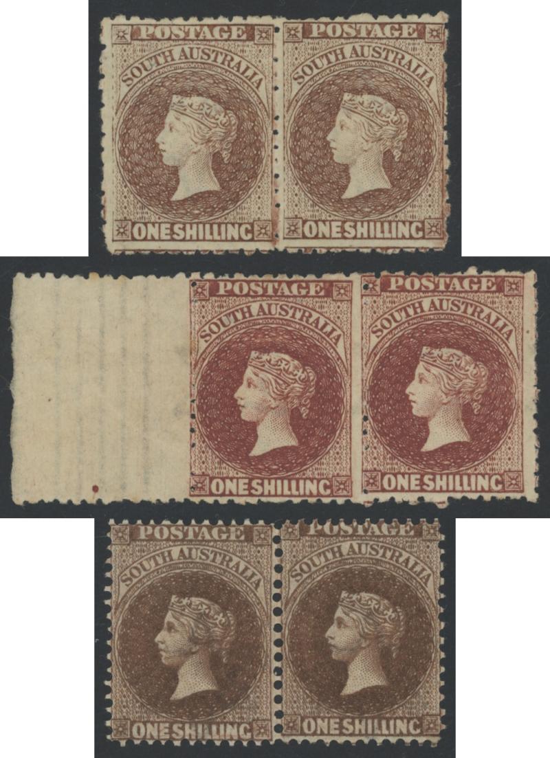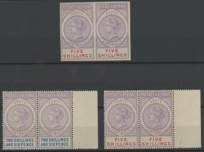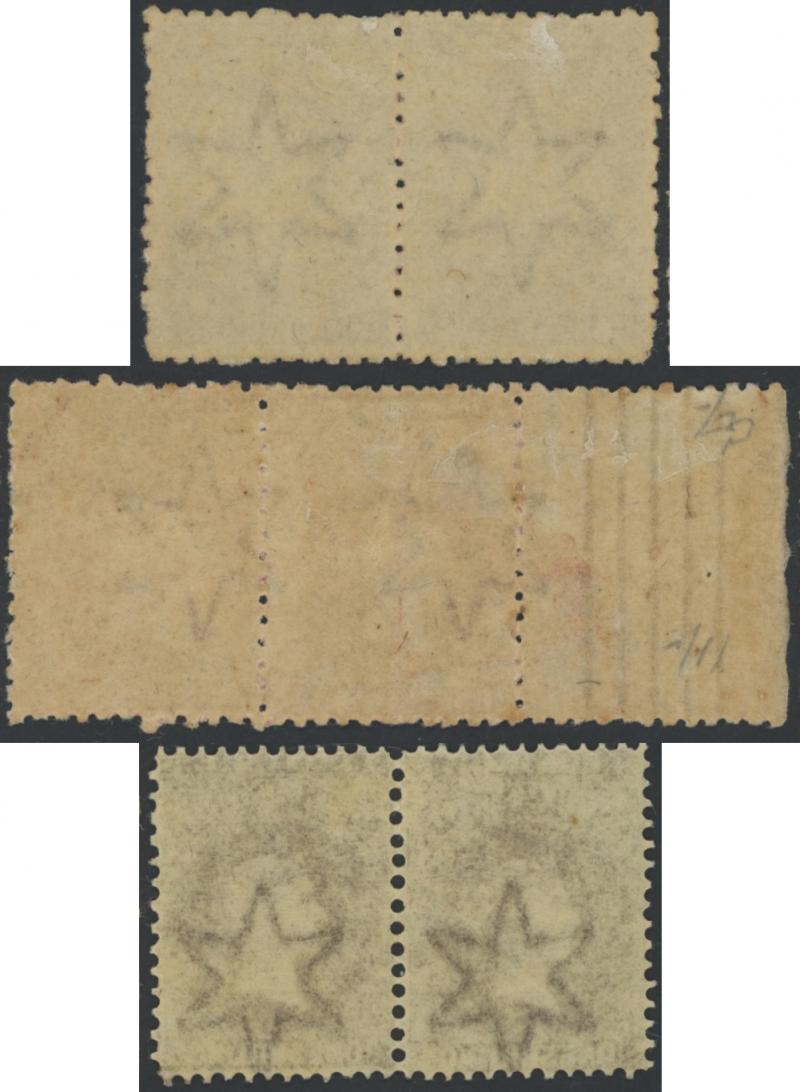SG 130 horizontal pairs, large-part gum, Cat £470+ for singles. (3 pairs) (Image1) (Image2)