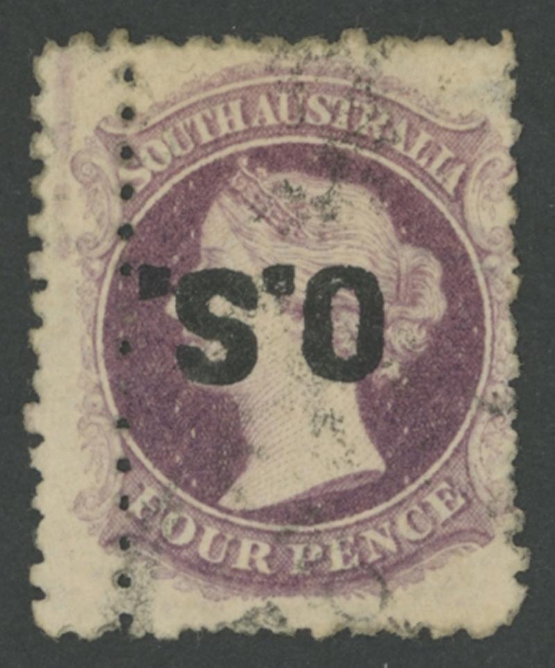 OVERPRINTED THICK 'OS': 1876-85 QV Perkins Bacon Broad Star Wmk Perf 11½-12½ 4d deep mauve with the Overprint Inverted SG O24a and