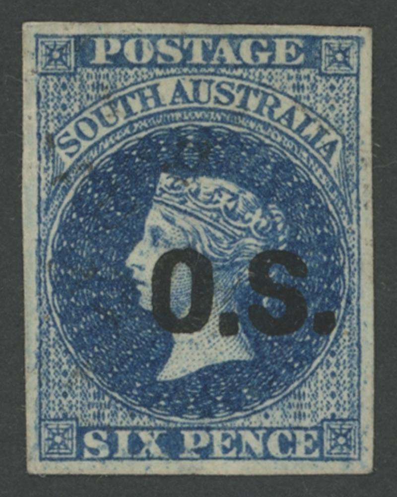 OVERPRINTED THICK 'OS': 1876-85 QV Perkins Bacon Broad Star Wmk Perf 11½-12½ 6d Prussian blue as SG O25 but Imperforate, good even