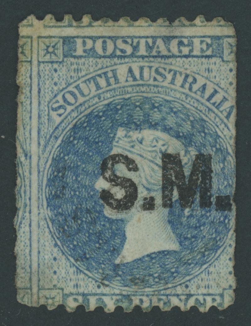 STIPENDIARY MAGISTRATES: 'S.M.' in Black on Perkins Bacon Large Star Wmk Perf 11½-12½xRouletted 6d bright pale blue SG DO530,