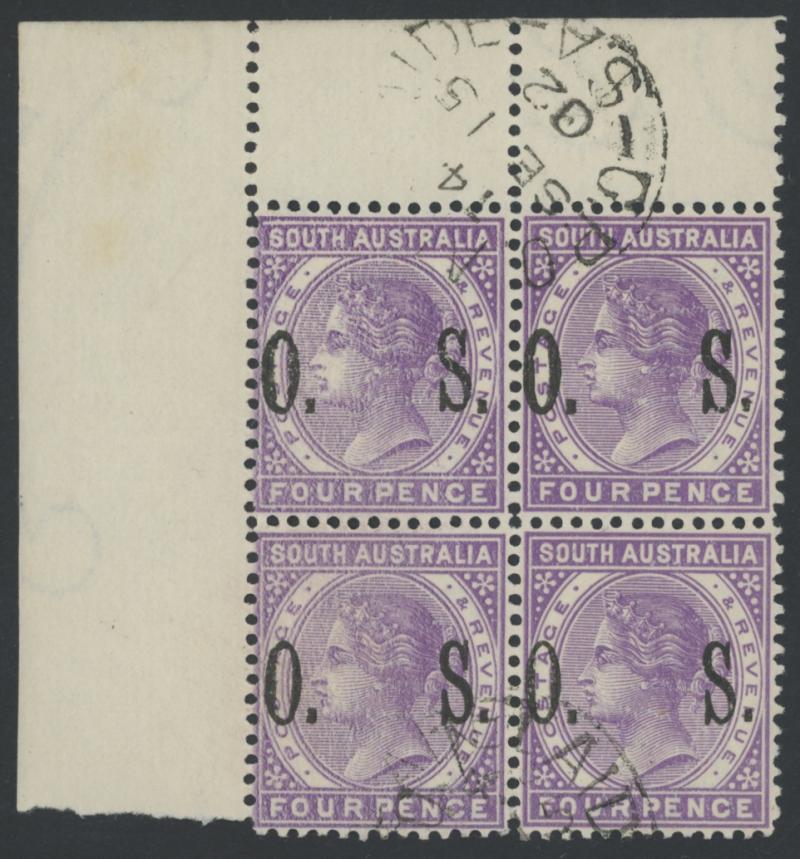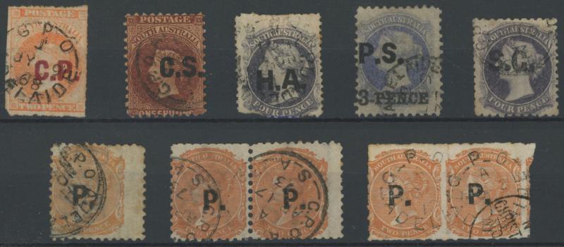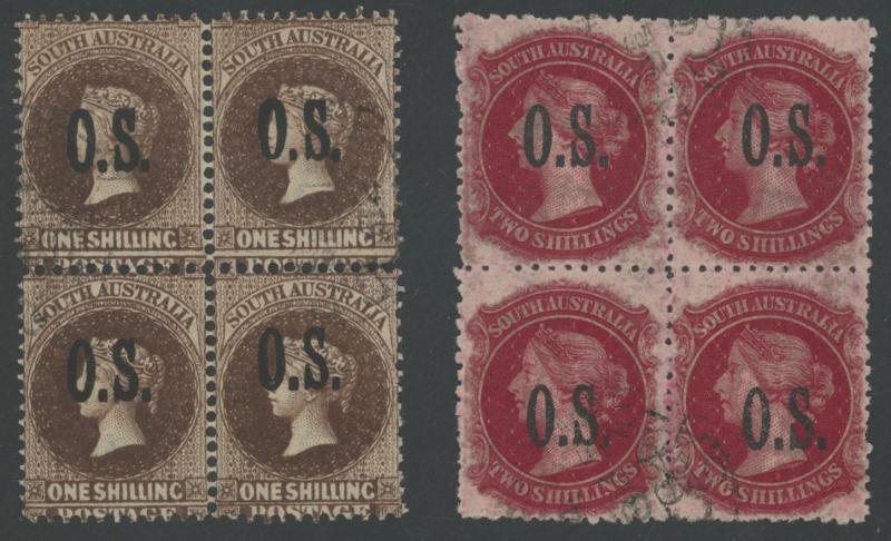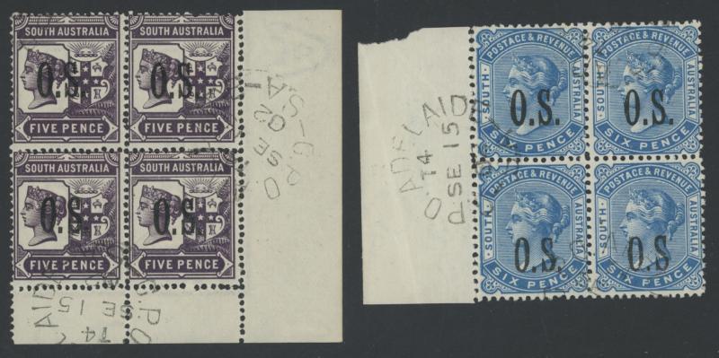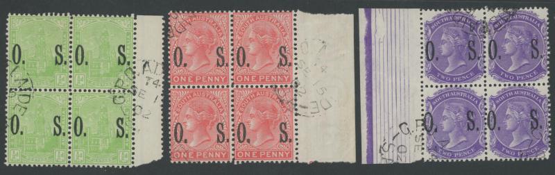 mostly marginal blocks of 4, all CTO at Adelaide mostly with full unmounted gum, Cat £380+ for postally used singles. Very scarce group.