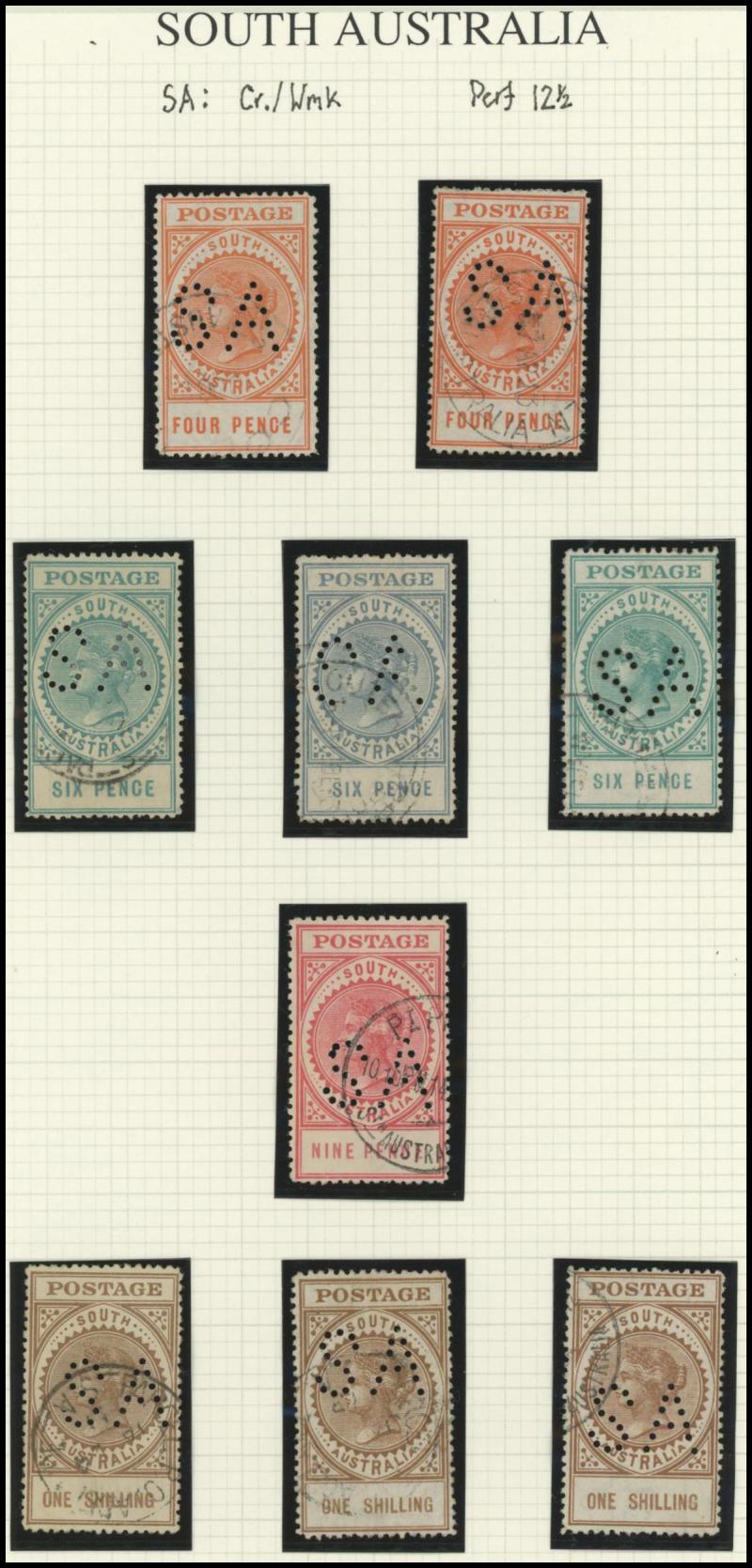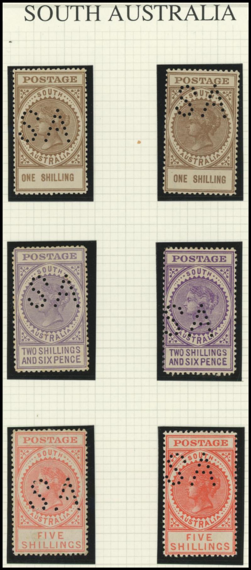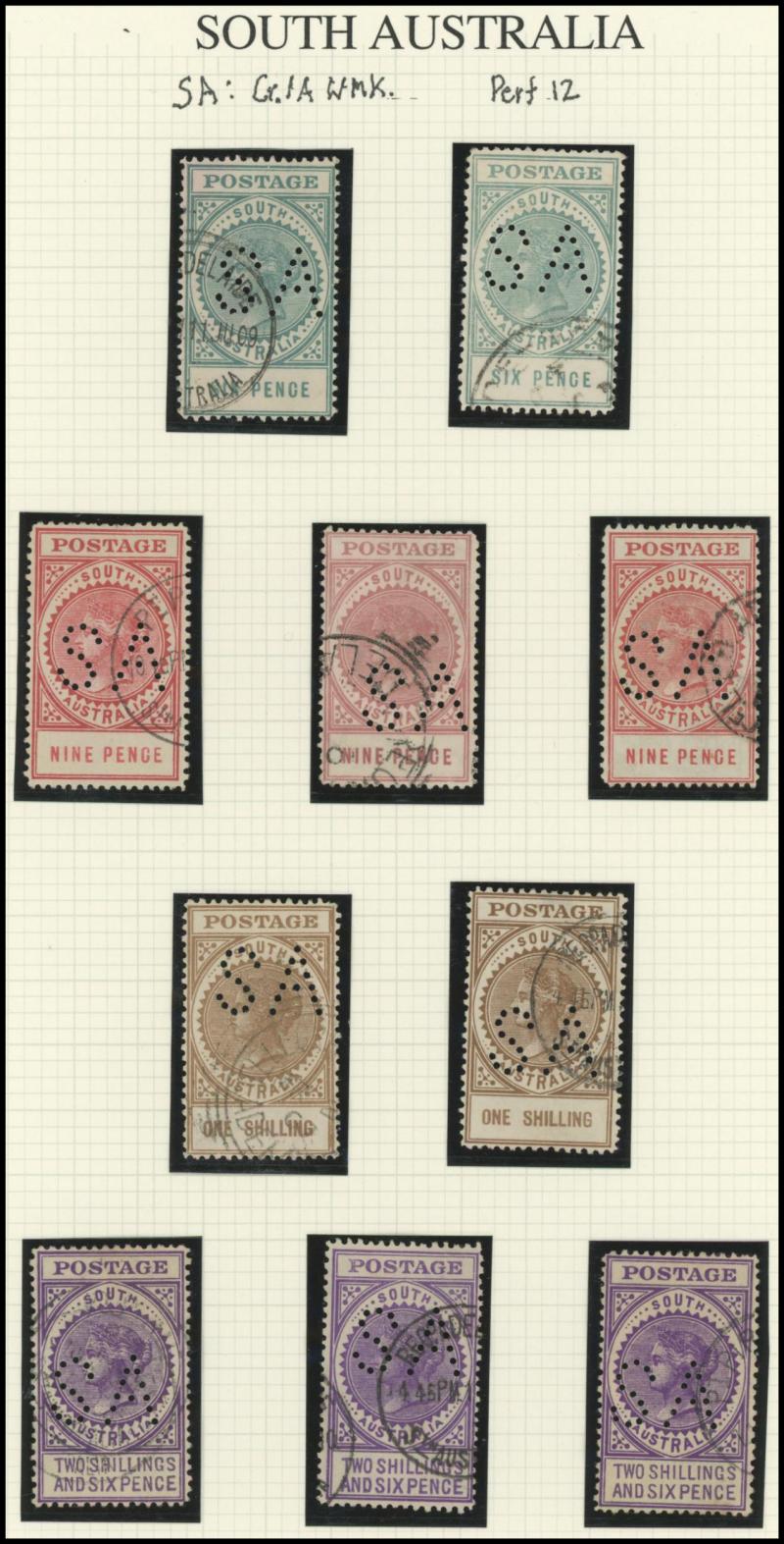 PUNCTURED 'SA': Mounted QV De La Rue Tall Stamps collection with Thin 'POSTAGE' used to 2/6d & 5/- x2 plus 3d block of 6 & 4d block