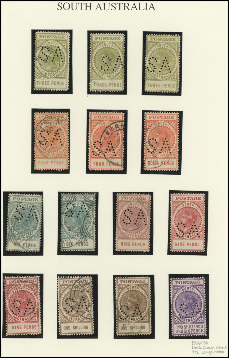 PUNCTURED 'SA': 1905-12 QV De La Rue Small Format Crown/A Wmk selection with mint including 2d block of 4 with Double 'SA' on the