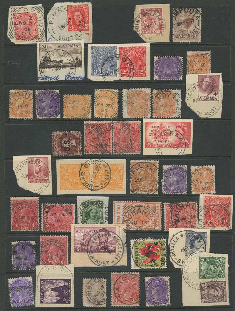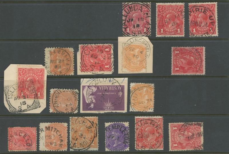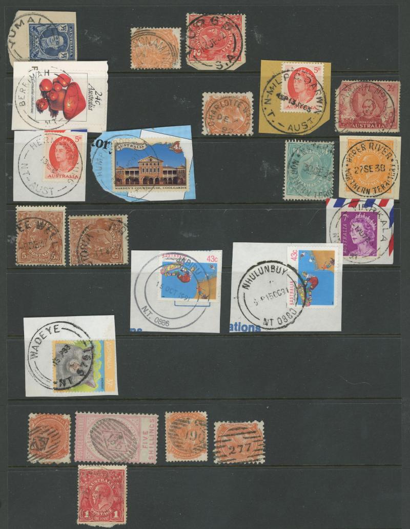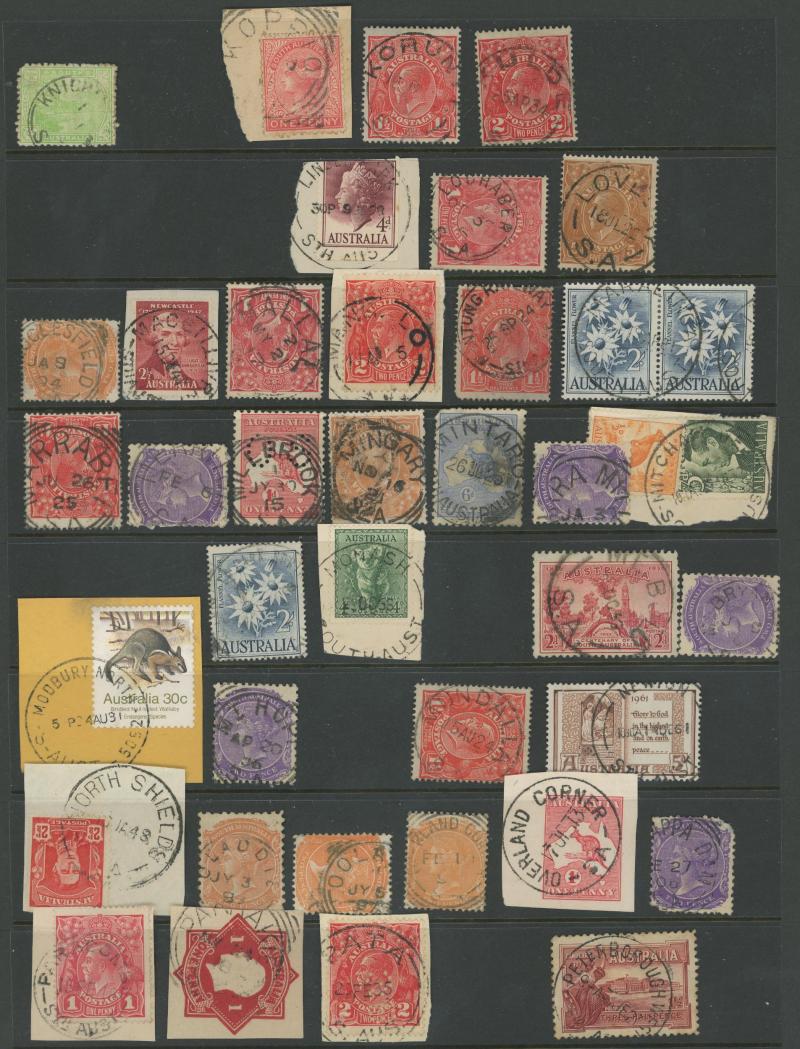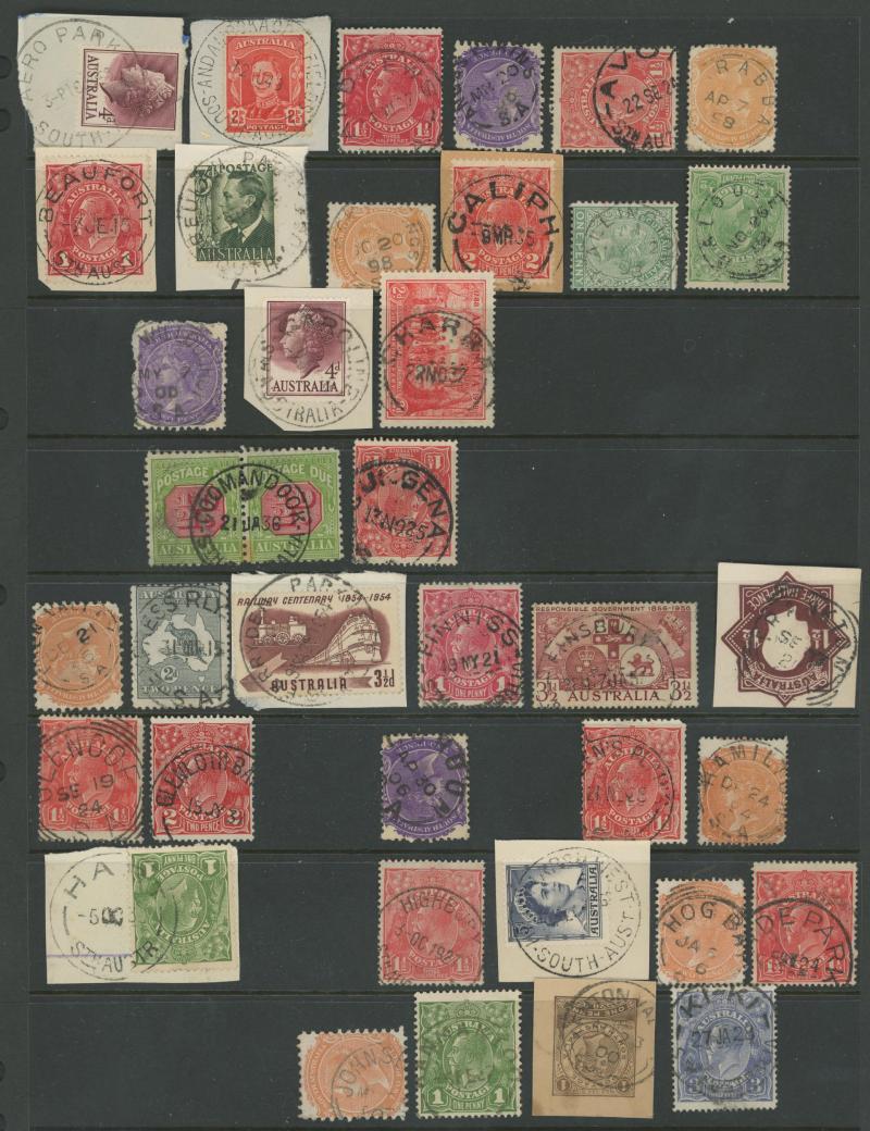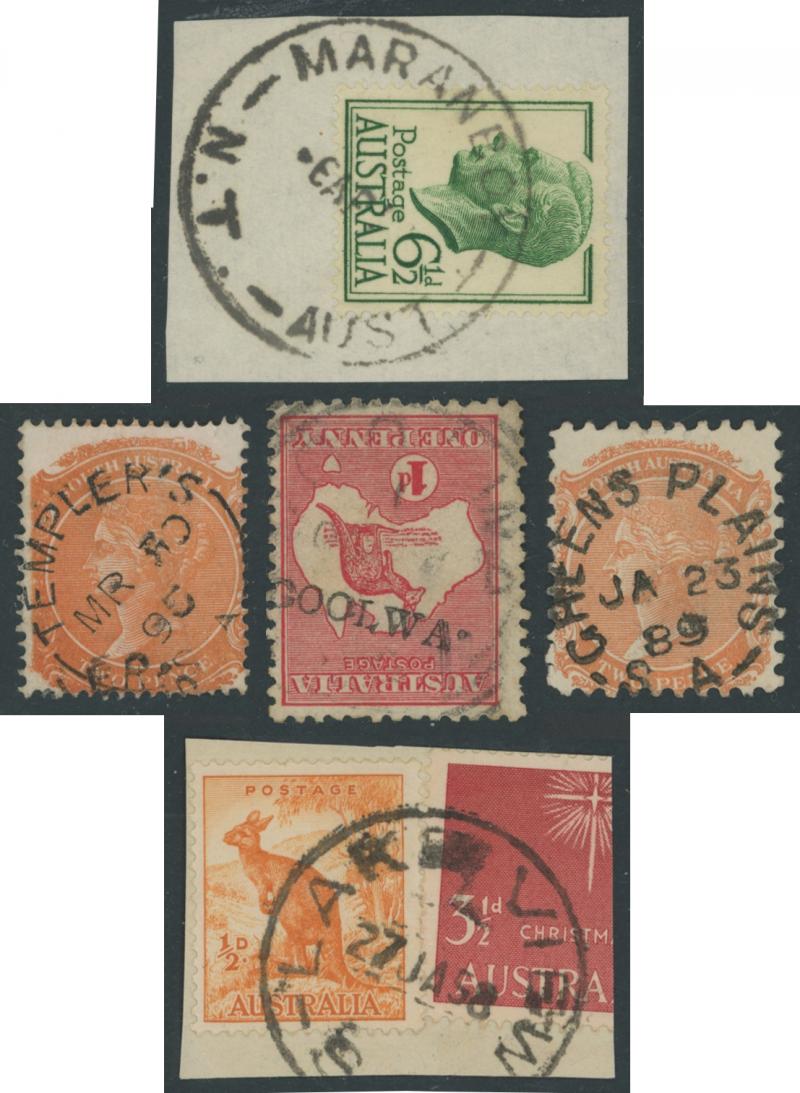 PLATELAYERS CAMP', etc, also small straight-line 'GOOLWA' on 1d Kangaroo; and some Northern Territory including 1952 'MARANBOY/NT-AUST', etc. A fine basis for expansion.