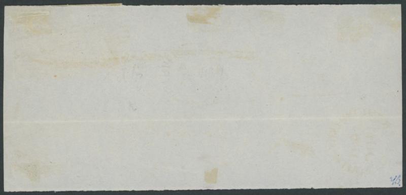 SG 1 horizontal pair with virtually full margins (a little cut-into at the base of the first unit & just clear at the base of the second unit, scissor-cut in the margin only at lower-left) tied by Diamond-Numeral '36' with Mordan-pattern