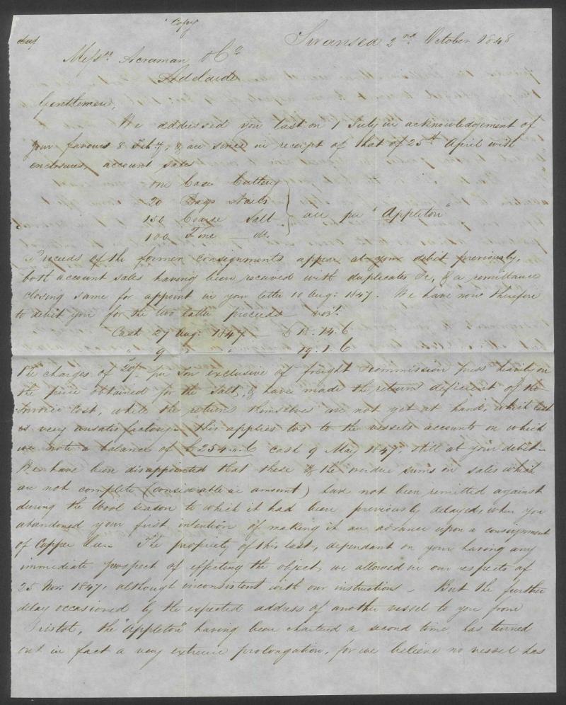 1848 unstamped envelope from Wales enclosing original letter headed "Swansea 2 October 1848" plus copy letter headed "... 27