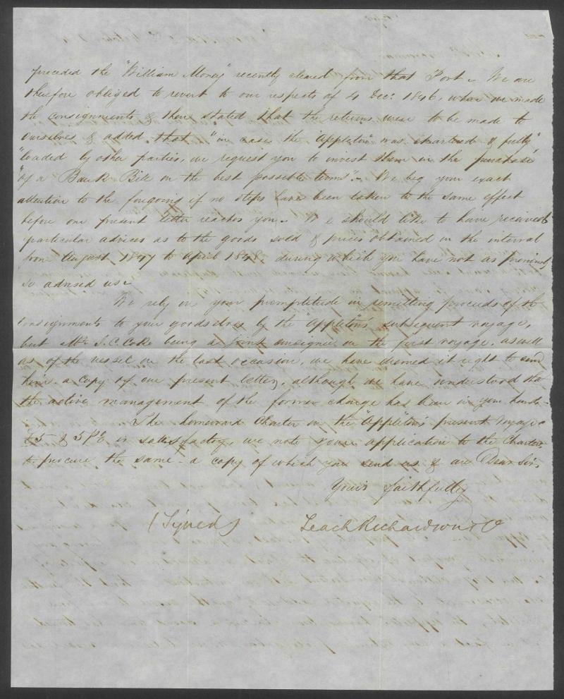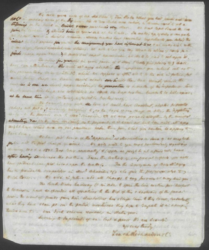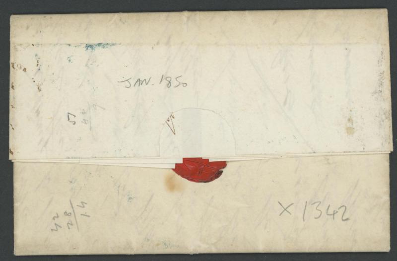 1850 unstamped entire letter from Wales headed "Taibach Jany 23 1850" enclosing Jones & Younghusband Bill of Lading with Impressed