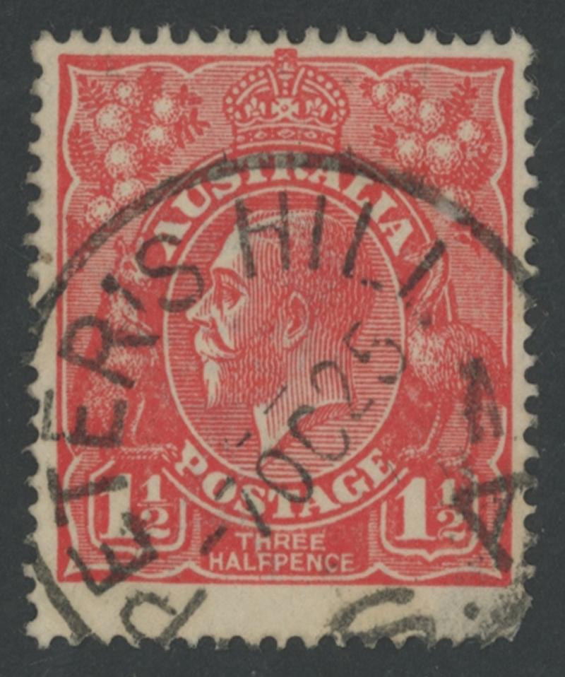 Peter's Hill: 'PETER'S HILL/7OC25/S.A' (Receiving Office period, LRD by 8 months) very fine strike on KGV 1½d red. Rated RRRR.