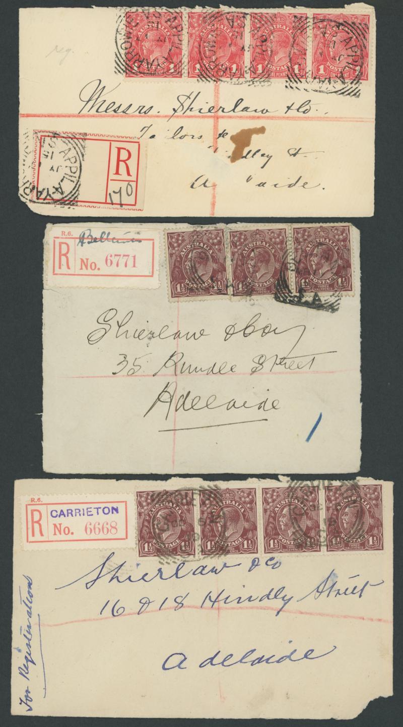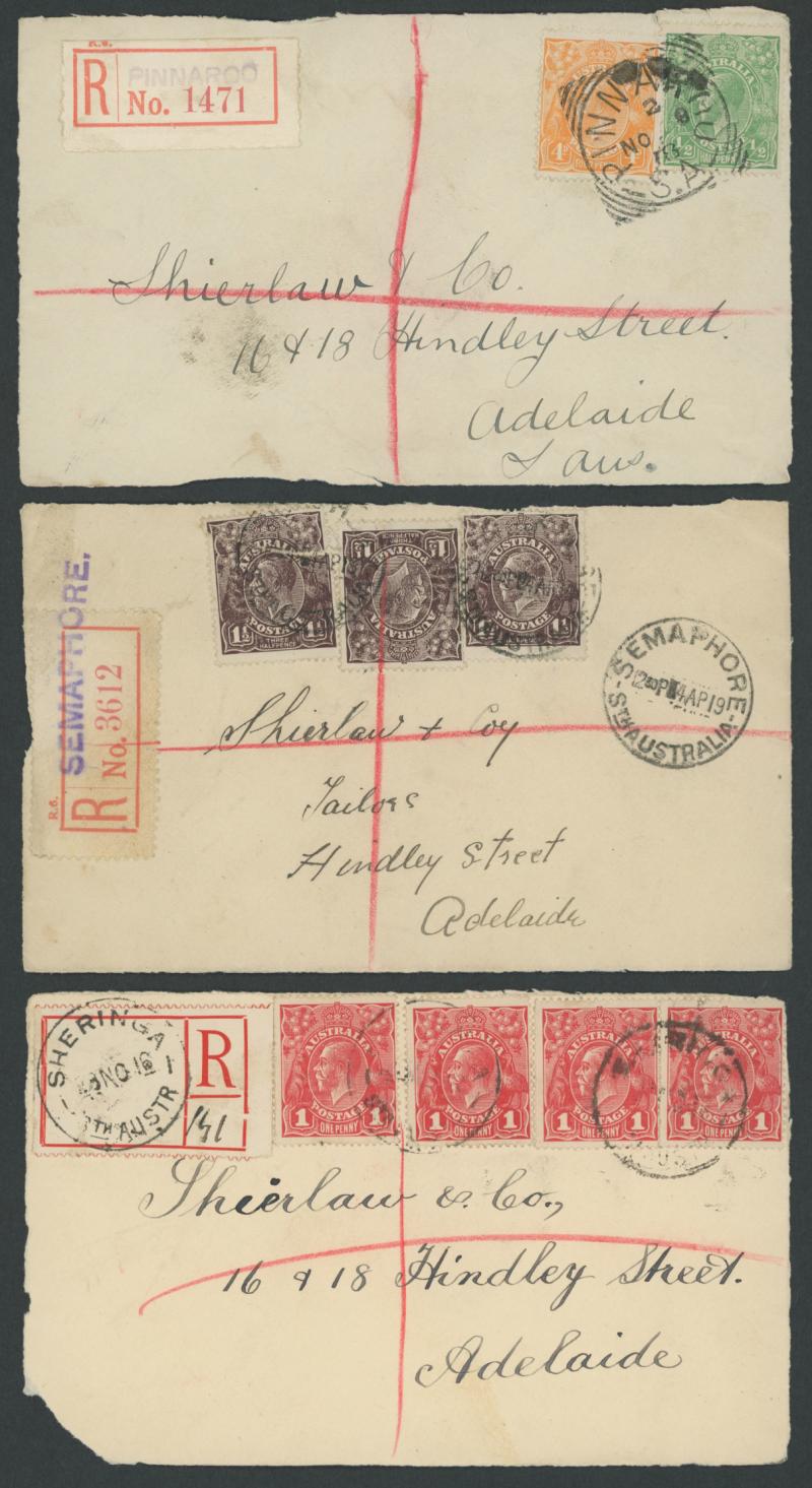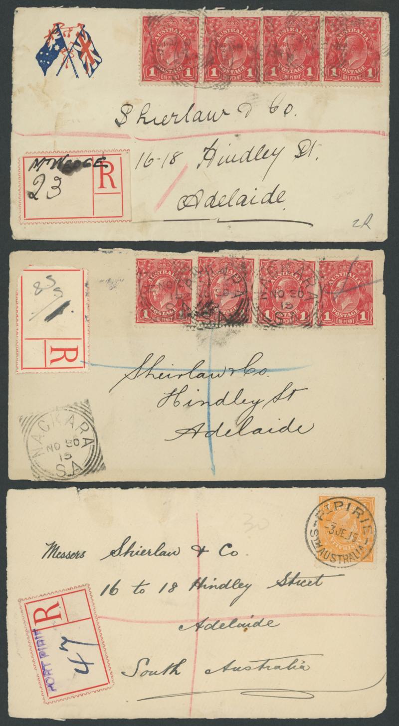 1915-19 Shierlaw registered fronts and full cover from 'LIPSON', mostly with common cds or squared-circles but all with early