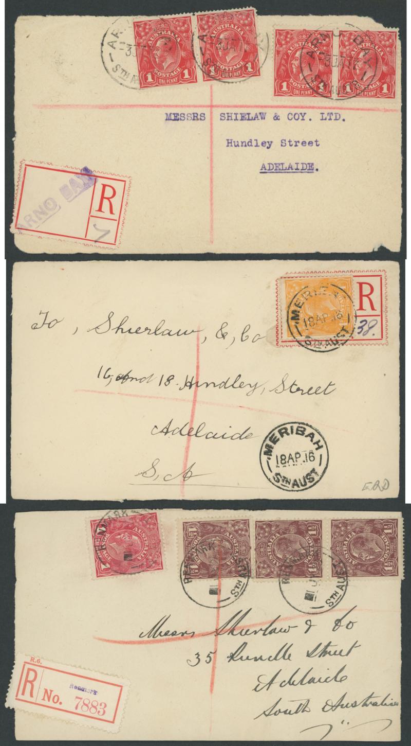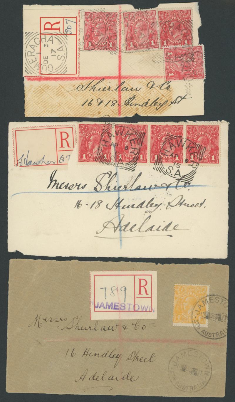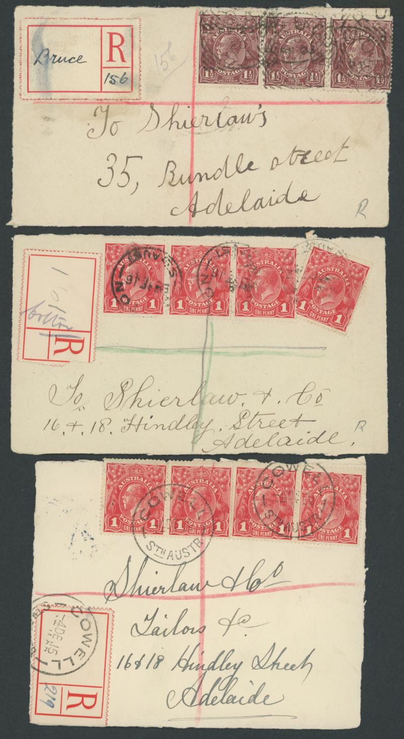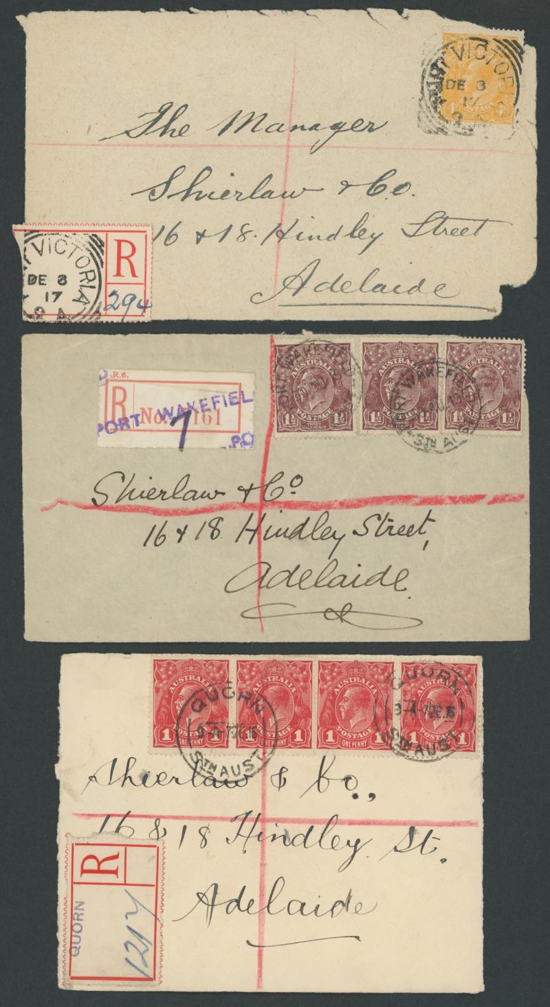 1915-19 Shierlaw registered fronts and full cover from 'LIPSON', mostly with common cds or squared-circles but all with early