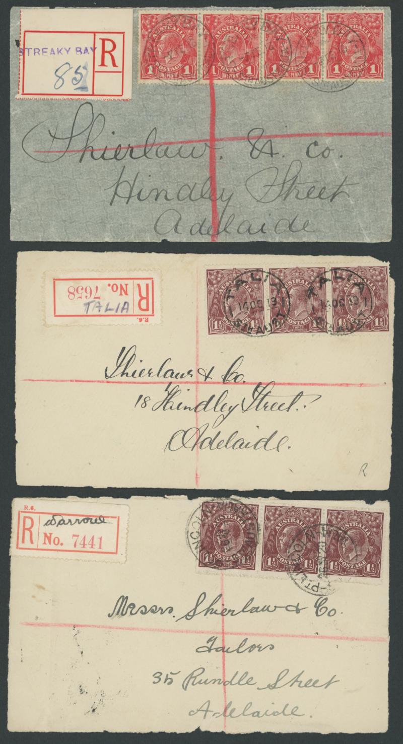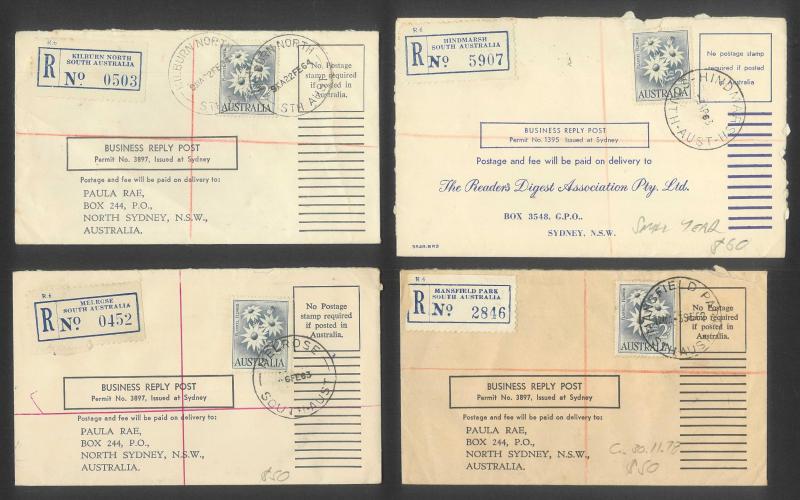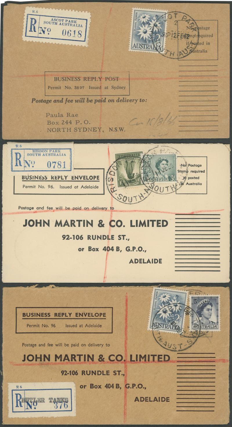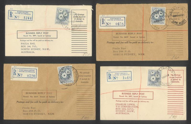 1929-64 Business Reply Post envelopes all registered and mostly from small post offices, those to John Martin (Adelaide) have been