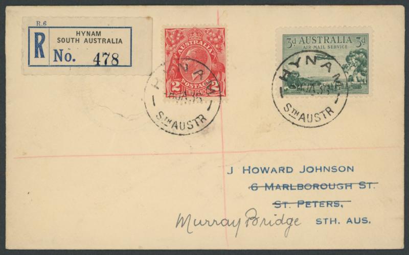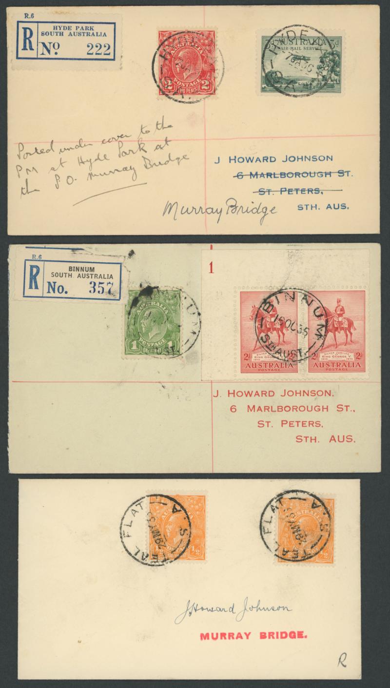 1935-36 Howard Johnson registered covers from 'BINNUM', 'HYDE PARK' and 'HYNAM' plus unregistered from 'TEAL FLAT'.