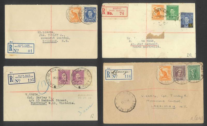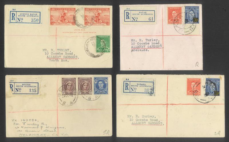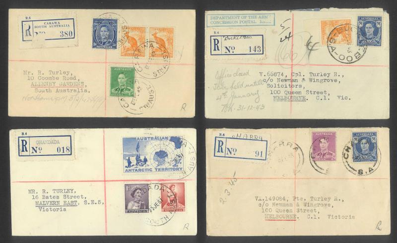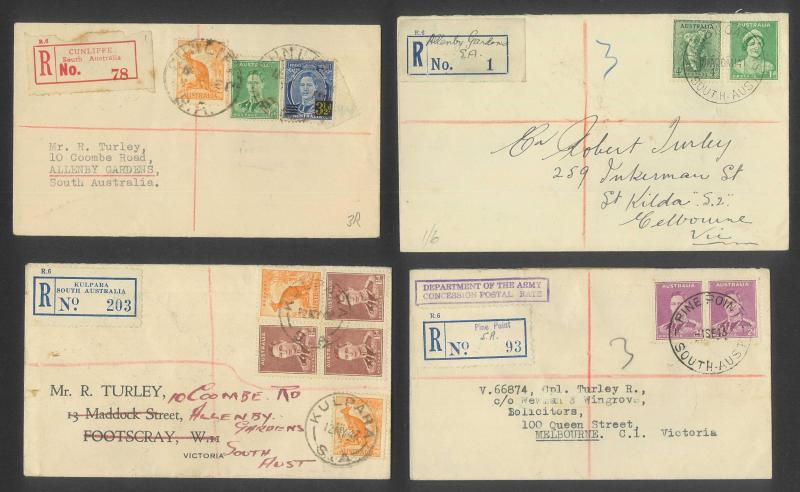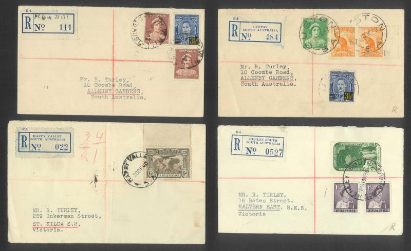 1940s-60s Robert Turley registered covers mostly from small post offices with some scarce datestamps and many provisional R labels