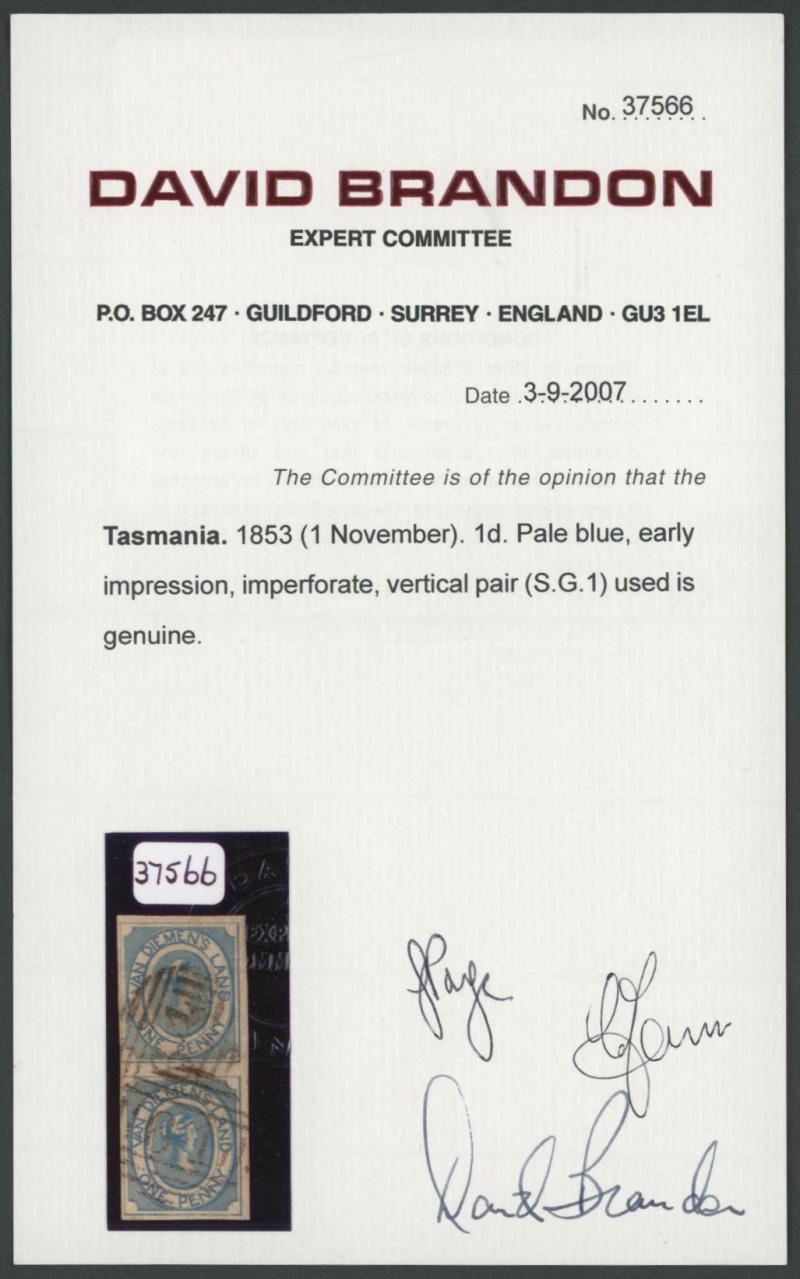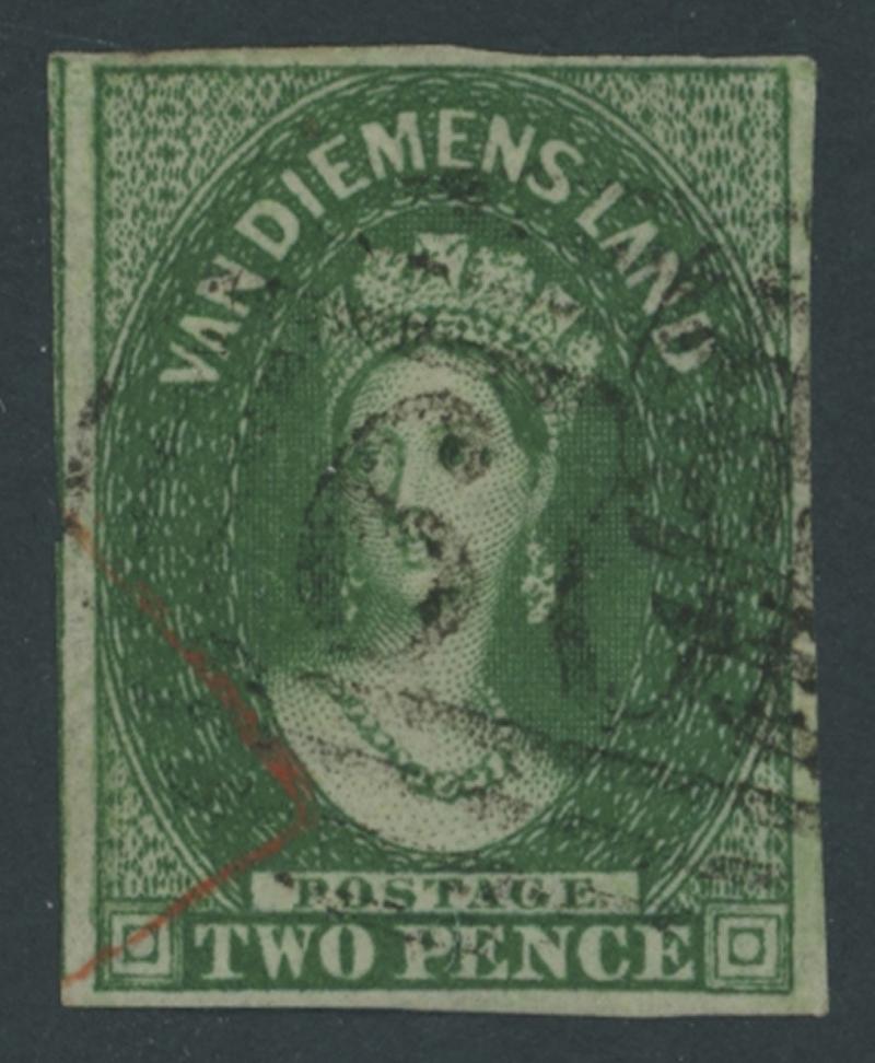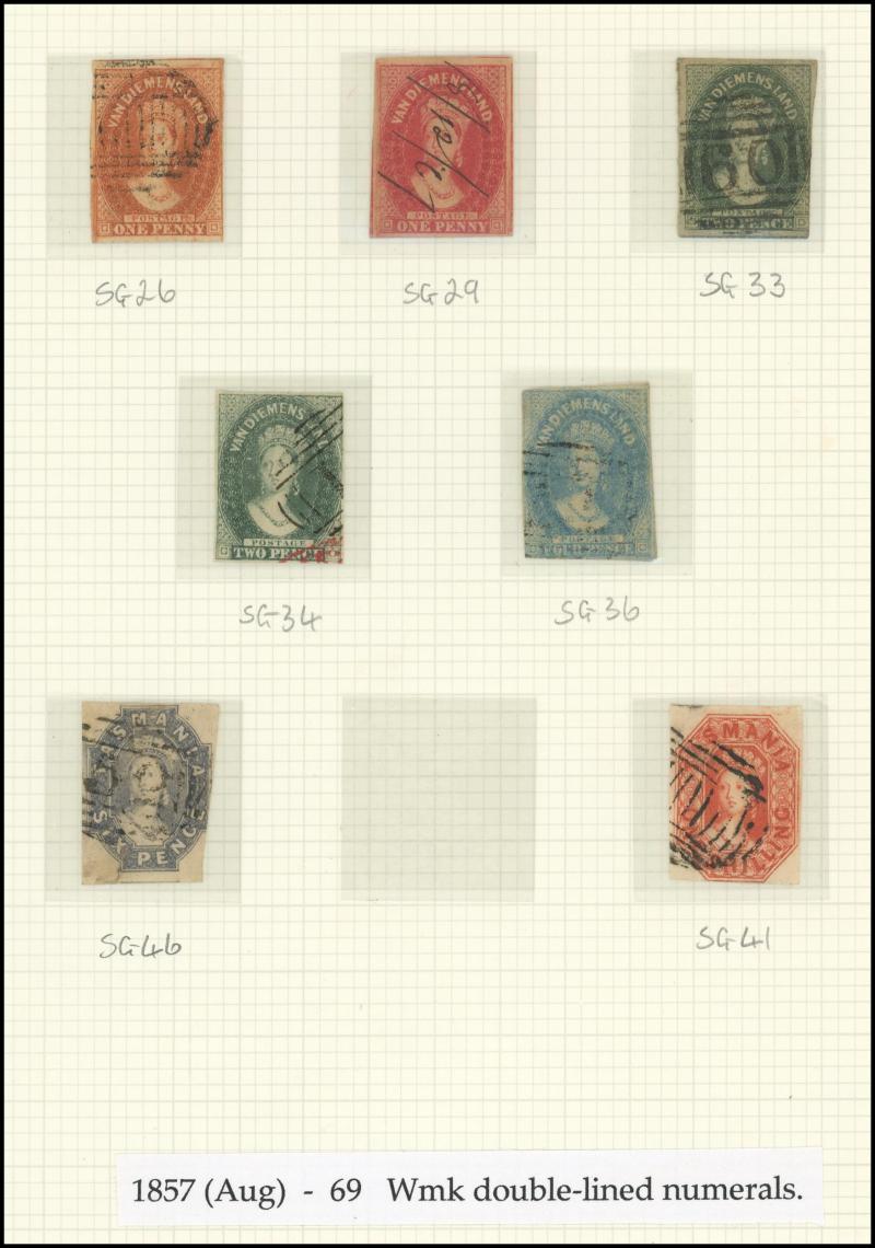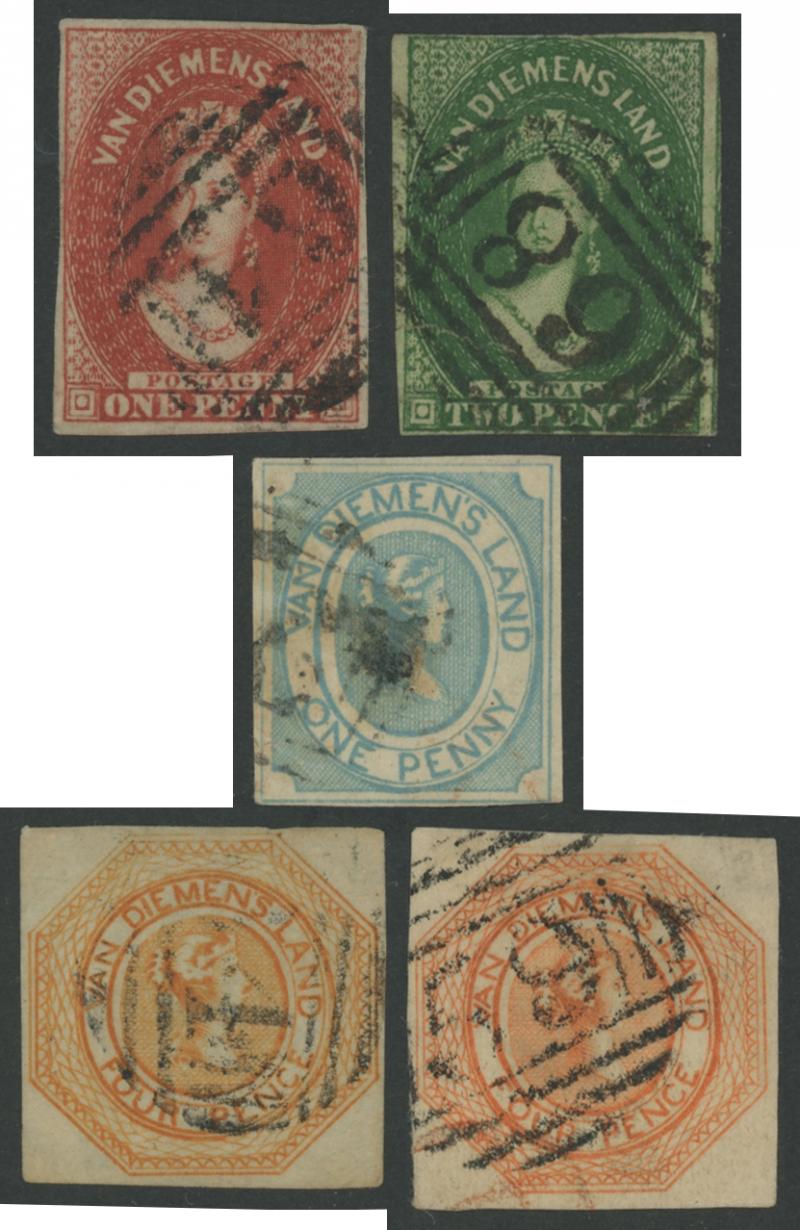 remarkable, BN '60' cancels of Launceston, Cat £3600+ for singles. Ex Alfred Caspary, John Bell (NSW) - sold in 2009 for $5290 (Sale 150 Lot 303) - and 'Dubois' Part III: sold for SFr2195. The equal-largest multiple recorded: John Bell stated "Used,