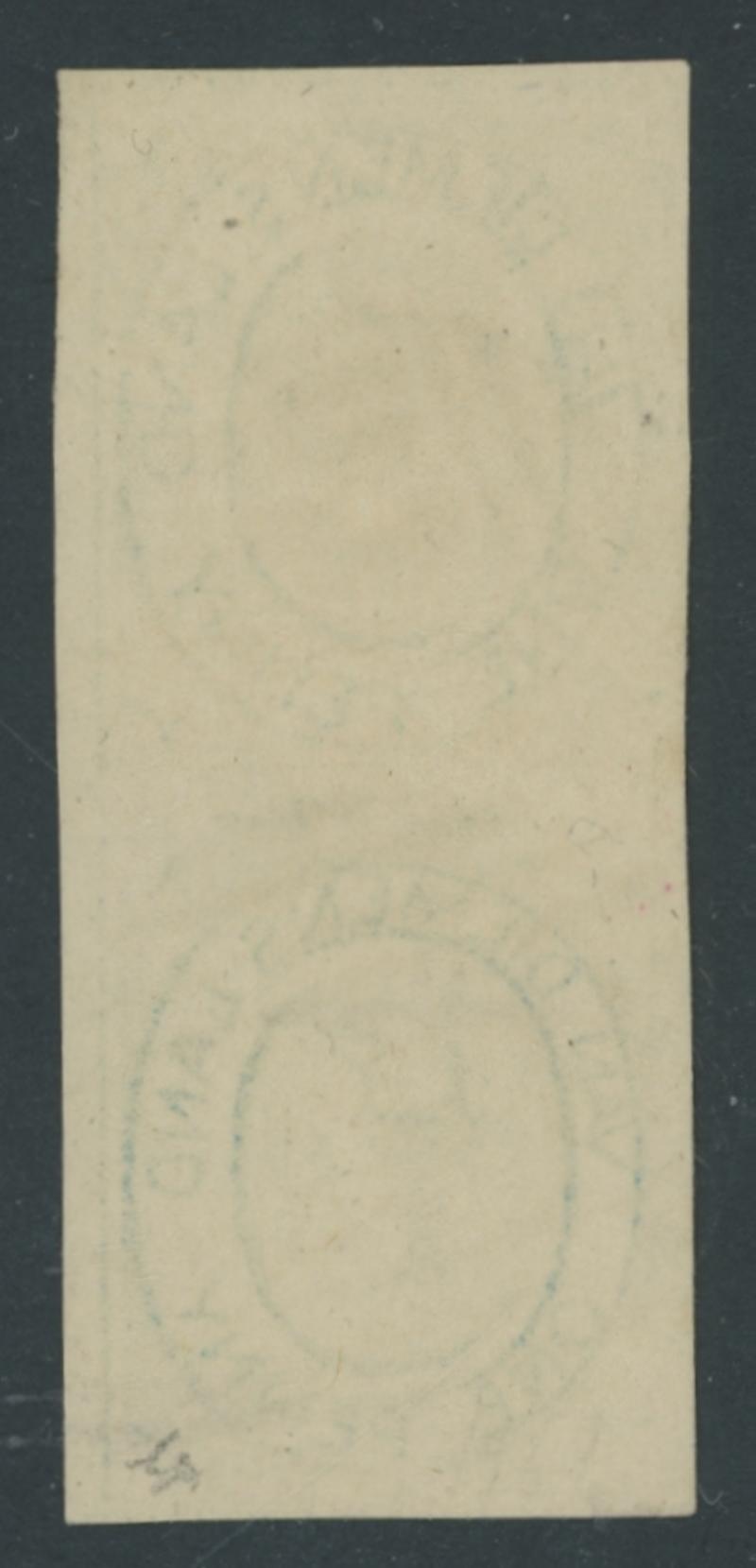 1853 QV Couriers Earliest Printings on Soft Yellowish Paper 1d blue SG 2 vertical pair with complete outer framelines and margins