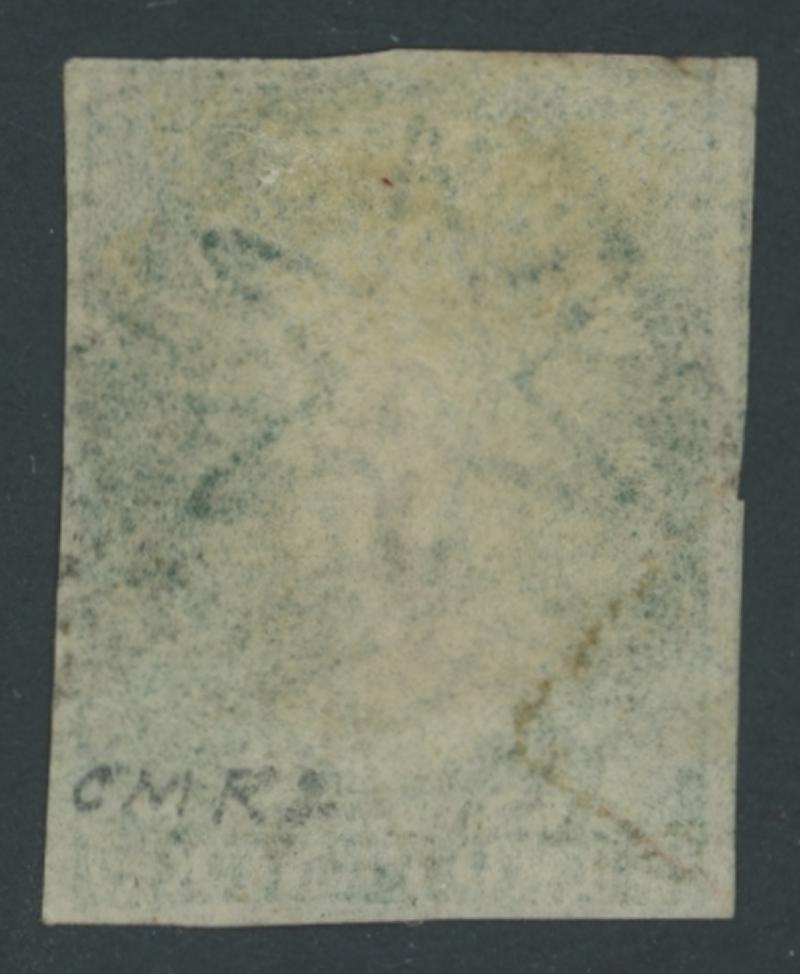 1853 QV Couriers Earliest Printings on Soft Yellowish Paper 1d blue SG 2, an unusually large stamp with complete outer framelines