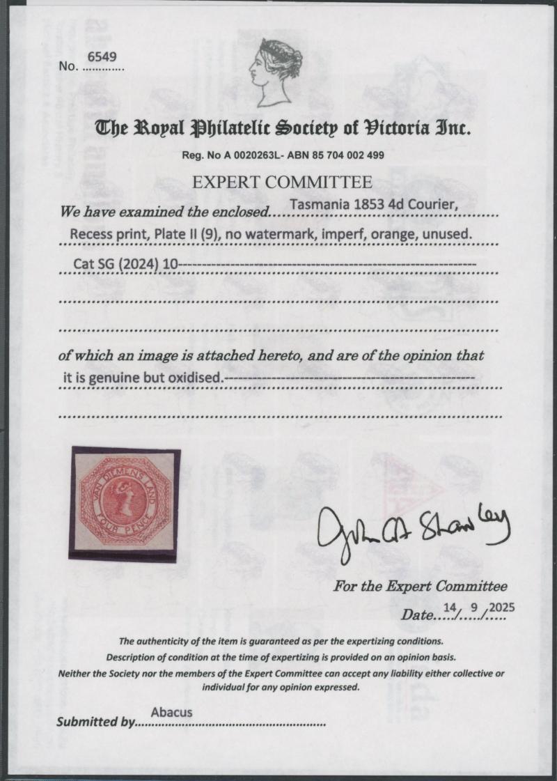 oxidisation, large-part gum, Cat £8250+ (US$7000) for unused. RPSV Certificate (2025). (Image1) (Image2)