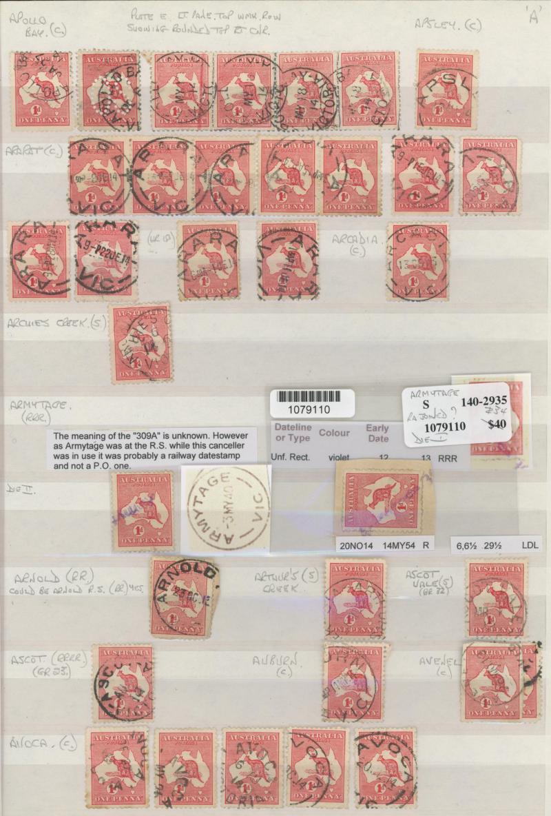 14/DOWN...' and 'TPO E/UP ...' (RR), etc, (1500+); also duplicated Melbourne cds range. An excellent lot for either Kangaroos or postmark collectors (or both).